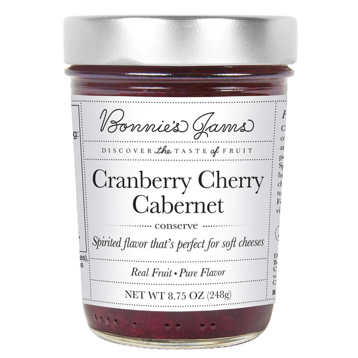 Cranberry Cherry Cabernet’s wonderful combination of cranberries, sour cherries, and a splash of Cabernet Sauvignon is the perfect companion for holiday entertaining. Spoon over a log of fresh chèvre or a baked brie, make it a festive addition to your cheese board