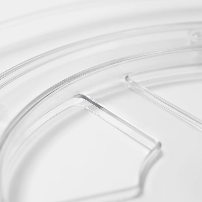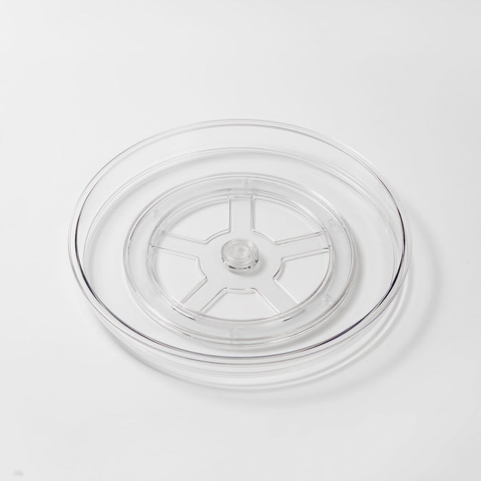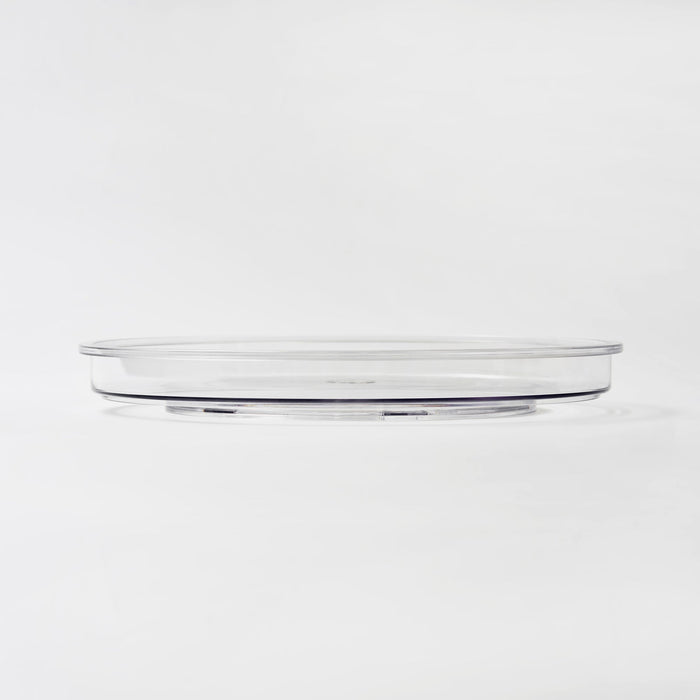 This convenient round tray has a smooth turntable design that allows for quick and easy access to items. Made of a lightweight and transparent PET material that matches any space, it is perfect for storing skincare or organizing the kitchen and fridge.