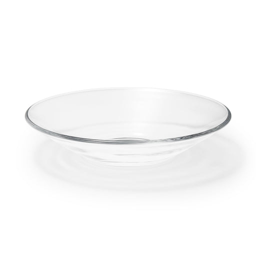 A saucer made from a heat resistant glass material, designed to perfectly pair with the Heatproof Glass Teacup.