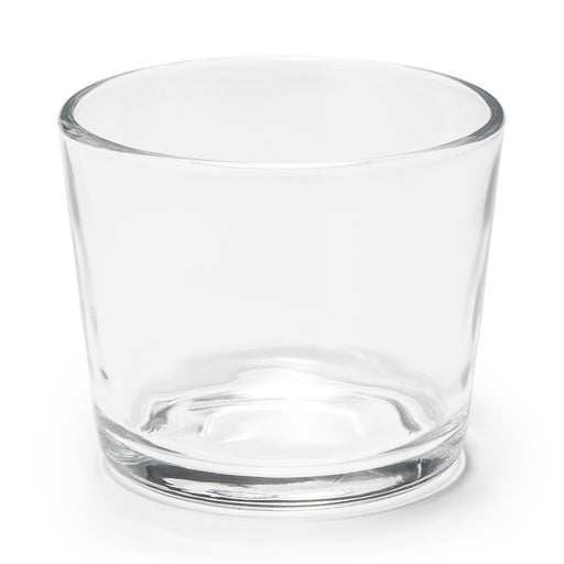 A simple, stackable glass cup made with a curved design to perfectly contour to the shape of your hand for comfort. Comes in 3 sizes to choose from.