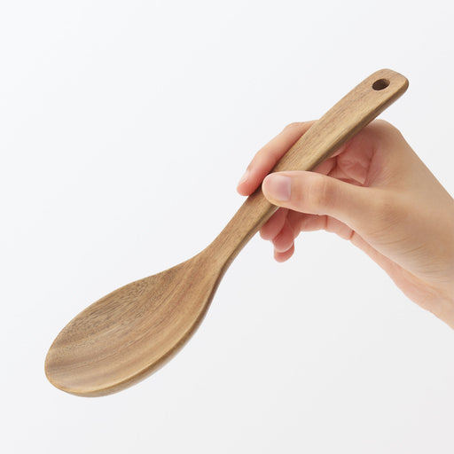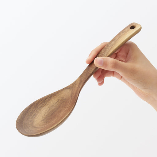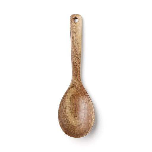 A simple serving spoon made of natural lightweight acacia wood, great for cooking or serving.