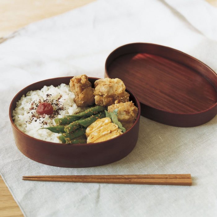 Applying and lacquering lacquer on the natural wood base. Deep color and gloss texture is feature. Perfect for everyday lunchbox.