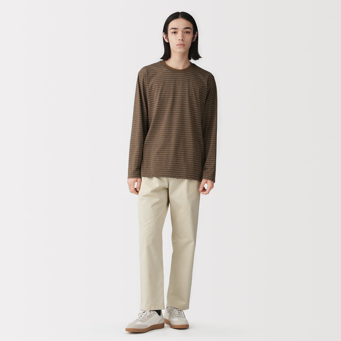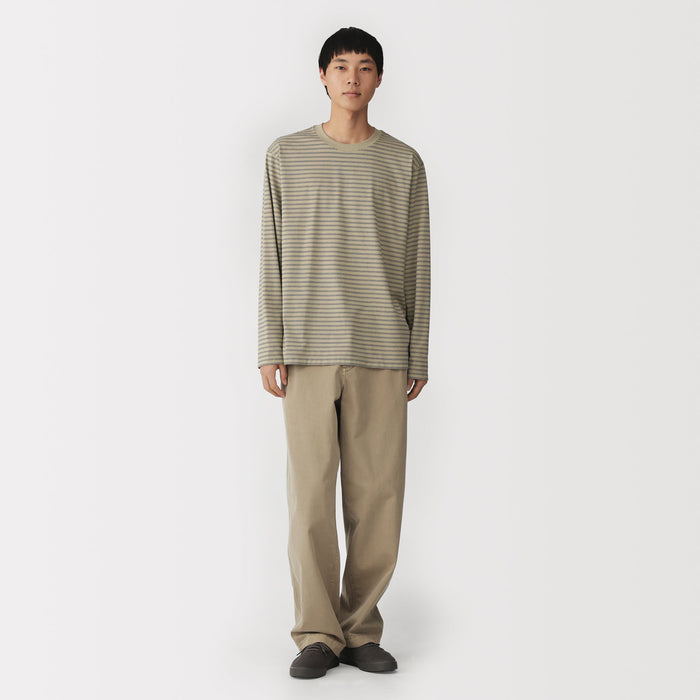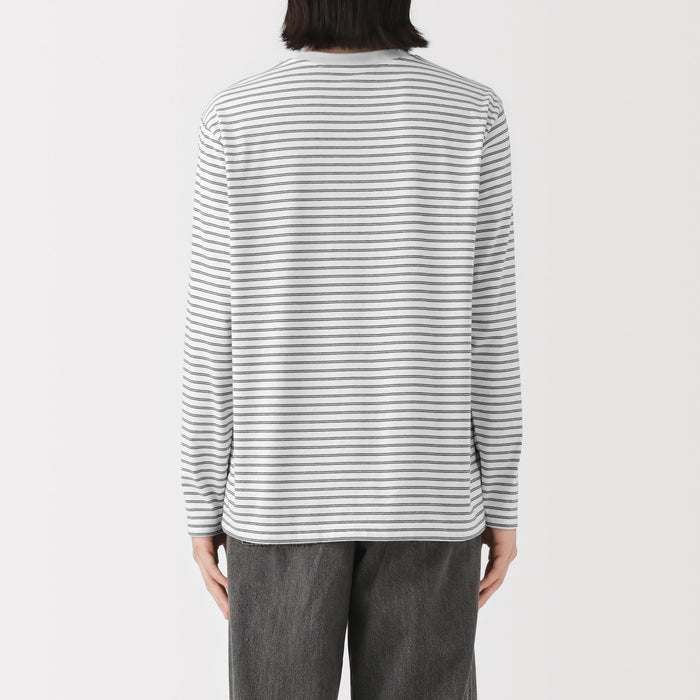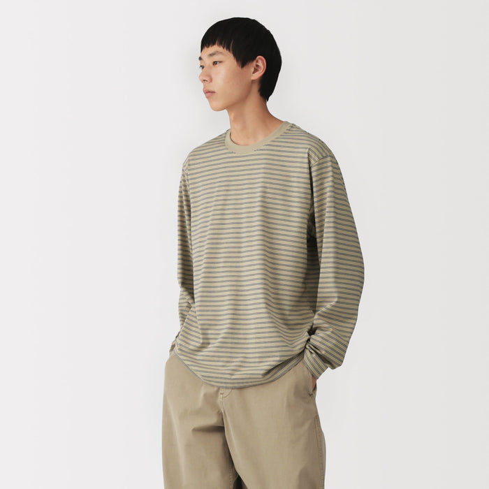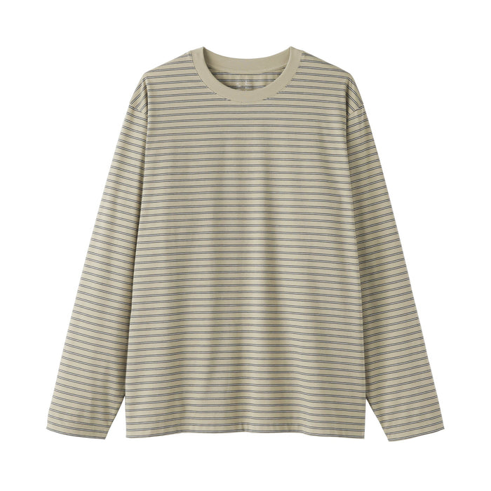 A classic long sleeve striped t-shirt with a boxy silhouette with just the right amount of room. Perfect for wearing all day long, either on its own or layered for extra warmth. Made with a blend of cotton and polyester that is lightweight and soft on the skin.