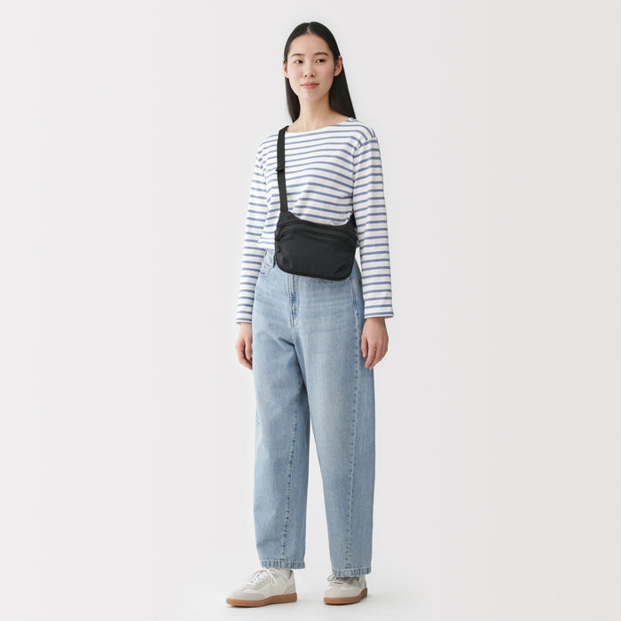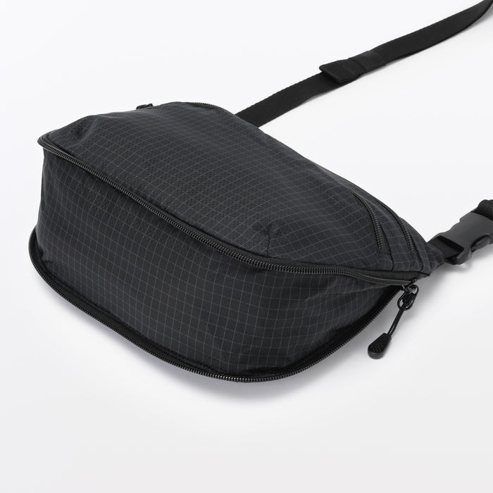 This mini shoulder bag is made of lightweight and durable ripstop fabric. The size zipper allows you to adjust the volume to fit more inside. It has a basic design that can be used for a wide range of occasions, from everyday use to outdoor activities like hiking. Wearable on your shoulder, around the waist, or as a crossbody, it is also great as a secondary bag for travel.