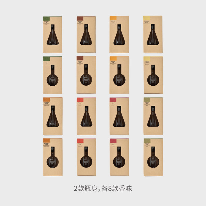 A fragrance diffuser made of clear glass. Add aromatic oils and reeds, and the remaining amount of essential oil is easily visible. After use, wash and replace with different scented essential oils for reuse.