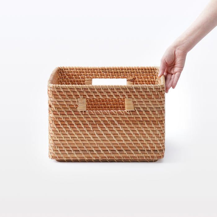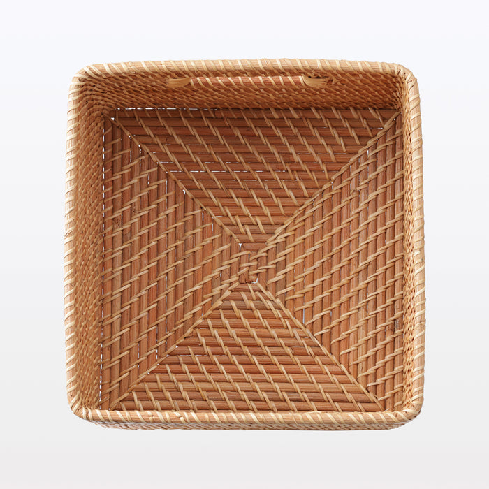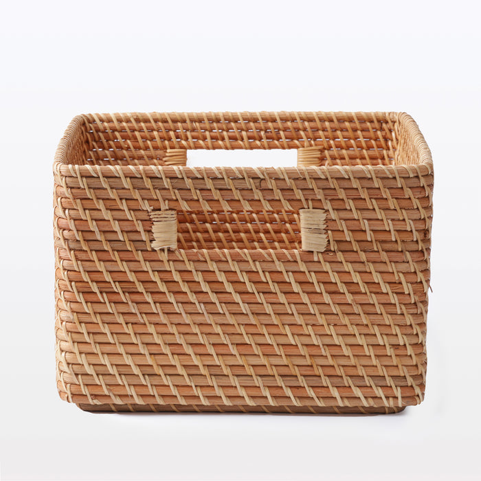Rattan Square Storage with Handle - Large W13.8 x D14.2 x H9.4"