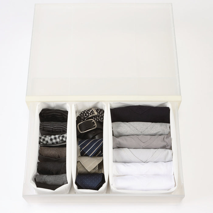 Keep your delicate clothes safe from woven baskets by using this adjustable fabric organizer. It helps prevent snagging in woven baskets and can also serve as a neat organizer for your wardrobe drawers.