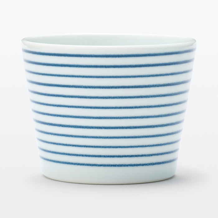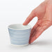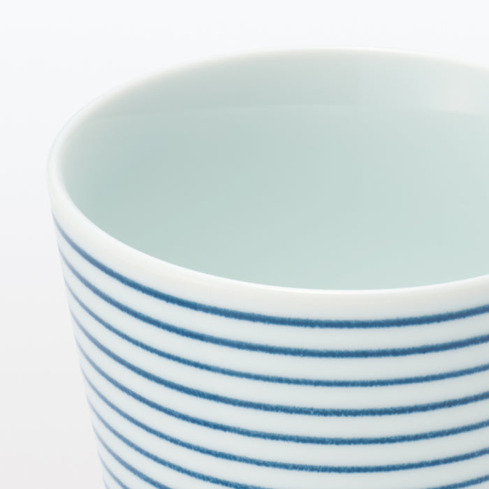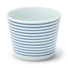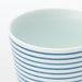 The horizontal stripes pattern features thin lines that wrap around the cup.