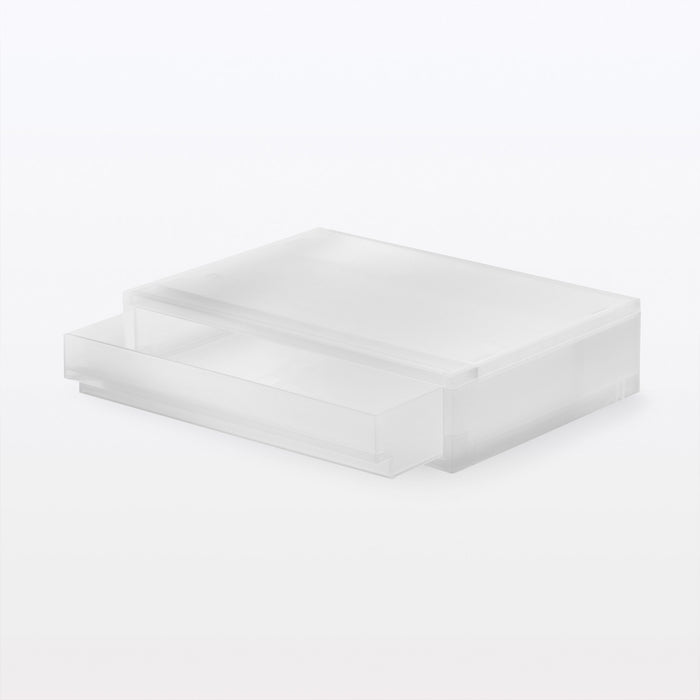 A storage case of a size suitable for storing small items and documents. It can be stacked and used, and the modules are combined, so it fits perfectly on a MUJI unit shelf.