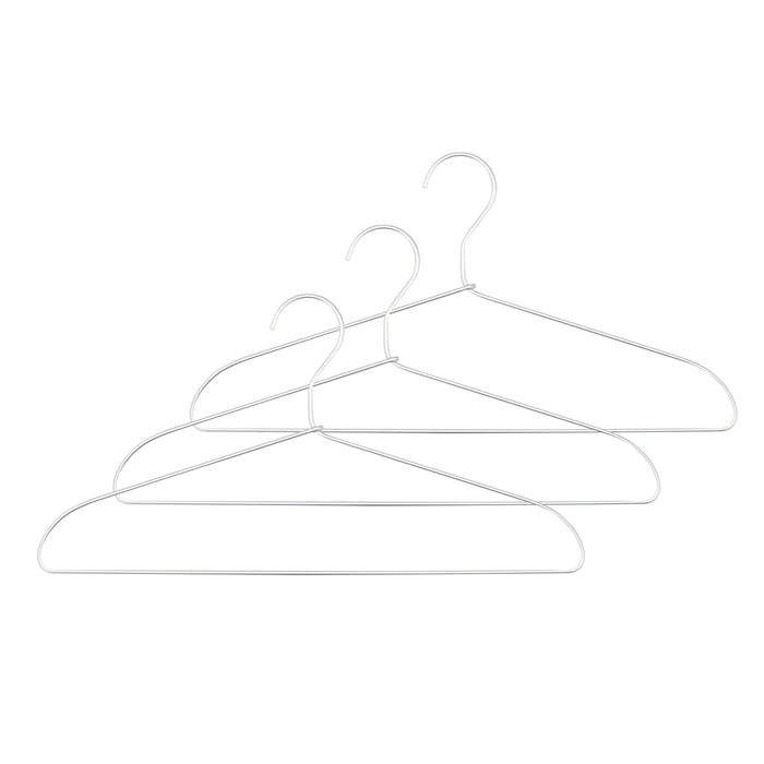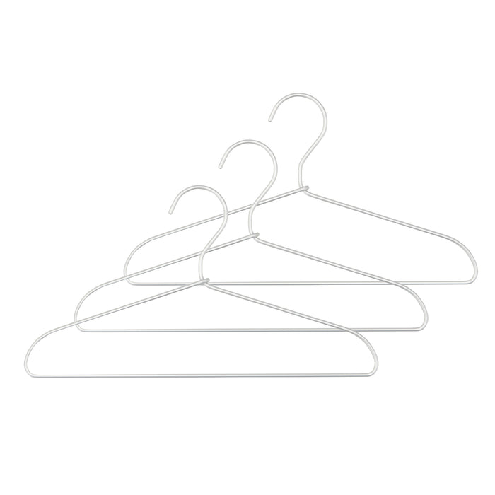 Set of 3 hangers made of aluminum. Laundry hanger designed to prevent hanger bumps on the shoulders. A variety of sizes to hold any size of garments also comes in an option with bumps to prevent clothes with thin straps from falling.