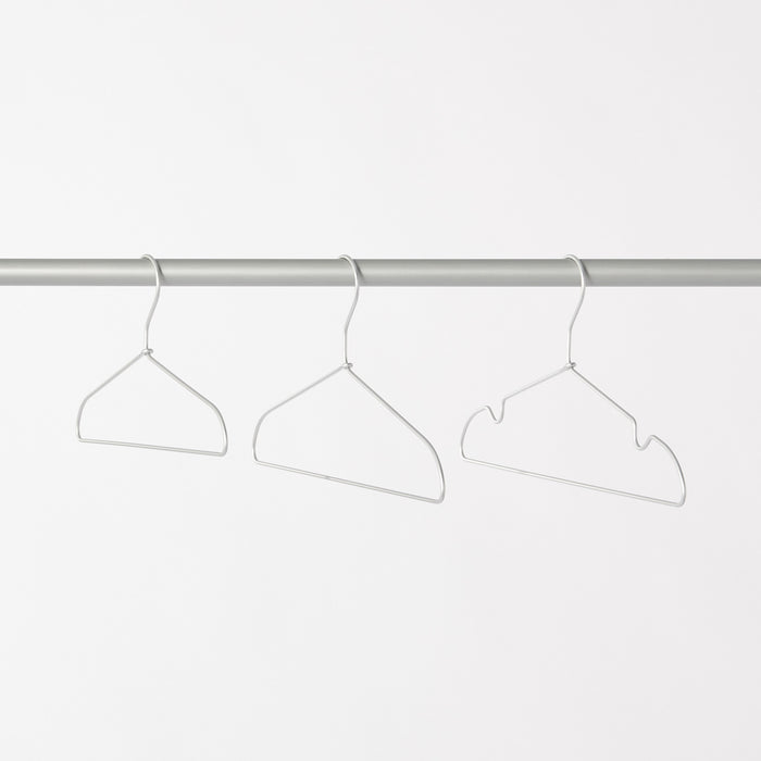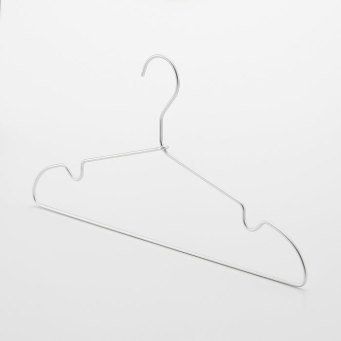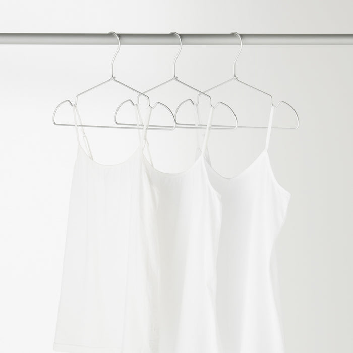 Set of 3 aluminum hangers with notches for straps and loops. Designed to prevent hanger bumps on the shoulders. The tip of the hook is chamfered for safe use.