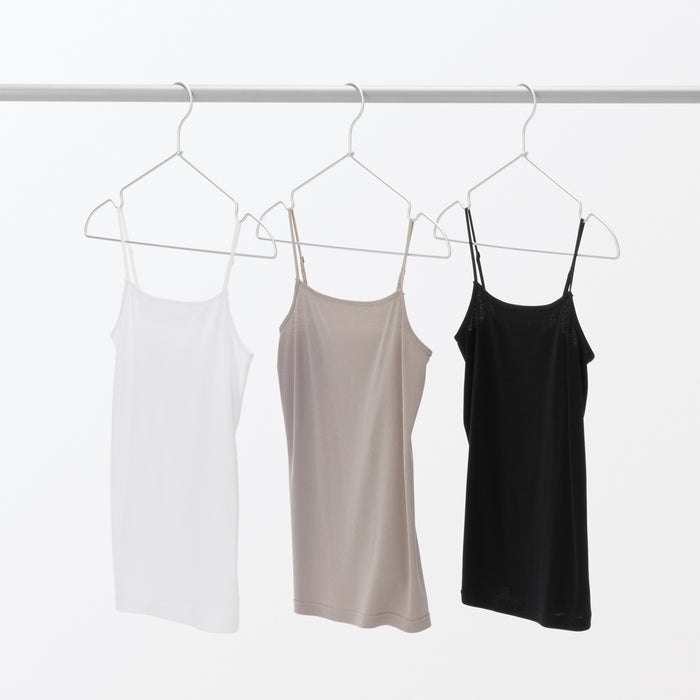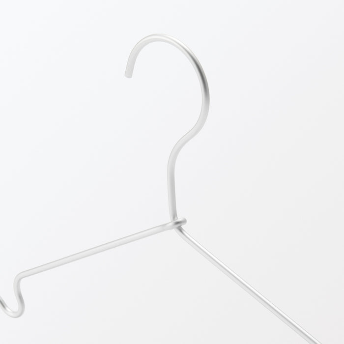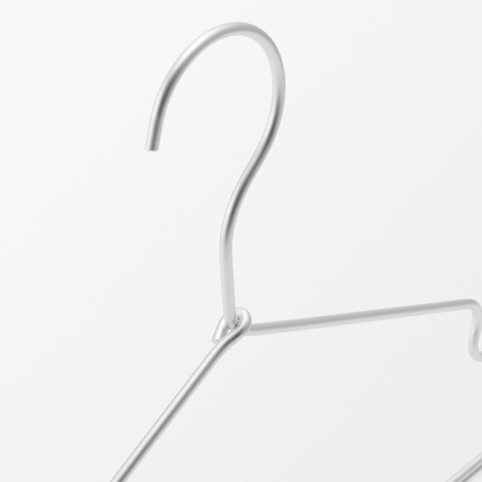 Set of 3 aluminum hangers with notches for straps and loops. Designed to prevent hanger bumps on the shoulders. The tip of the hook is chamfered for safe use.