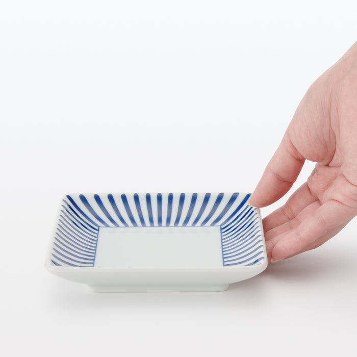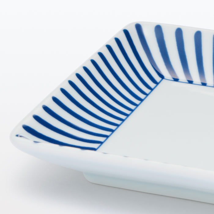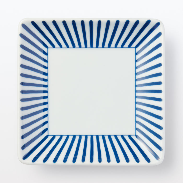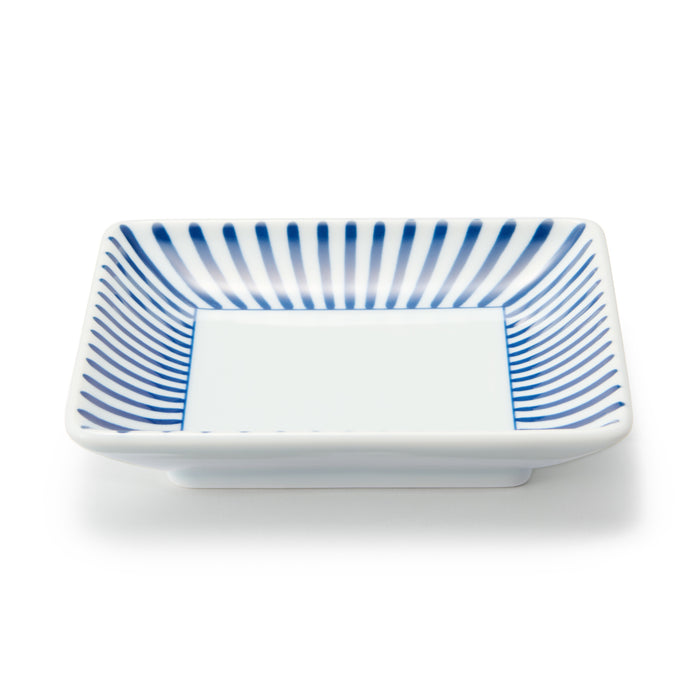 Inspired by traders' rice bowls used on ships during the Edo period, our Hasami Ware plates modernizes both function and tradition. This square plate is ideal as a small bowl for pickles and condiments. It can also be used to hold soy sauce or gyoza sauce.
