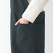 A dark grey cotton apron featuring a shoulder strap that is easy to wear over the head. It comes with 2 large pockets from the side to the back so that it is easy to bend and stretch even if there is something in the pockets when crouching.