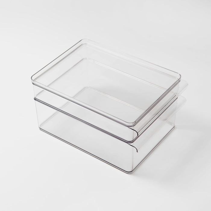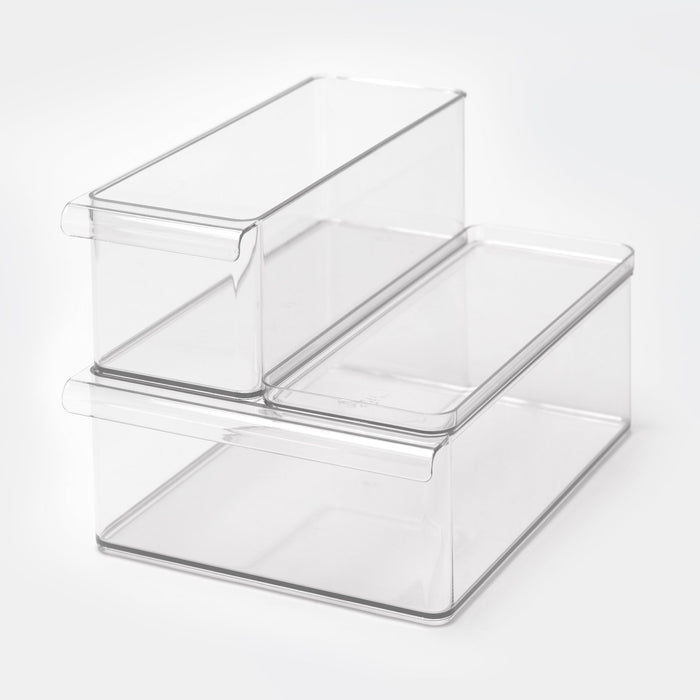 These large PET deep storage boxes are perfect for organizing your kitchen or bathroom. Their clear design makes it easy to see the contents, and a built-in handle ensures convenient access.