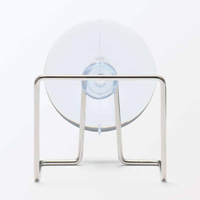 A sponge holder made from stainless steel. The suction cup design allows you to easily attach this sponge holder to the side of your sink for convenient storage. The open design allows for easy drainage and drying when not in use.