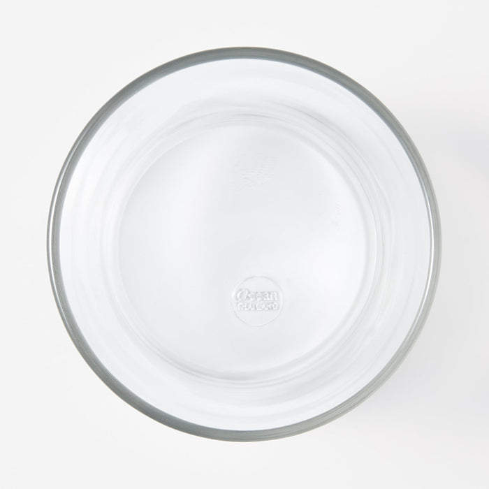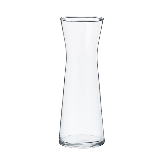 Simple design glass carafe for serving water. A light hourglass shape for easy holding when pouring.