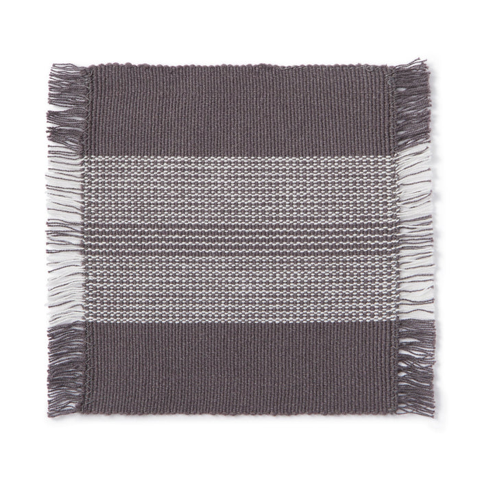 Made from textured Indian cotton, this coaster features a fringe edge that keeps seams thin, providing a stable base for your drinkware.