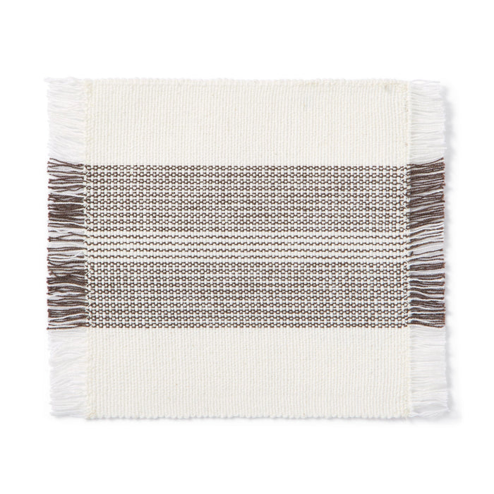 Made from textured Indian cotton, this coaster features a fringe edge that keeps seams thin, providing a stable base for your drinkware.