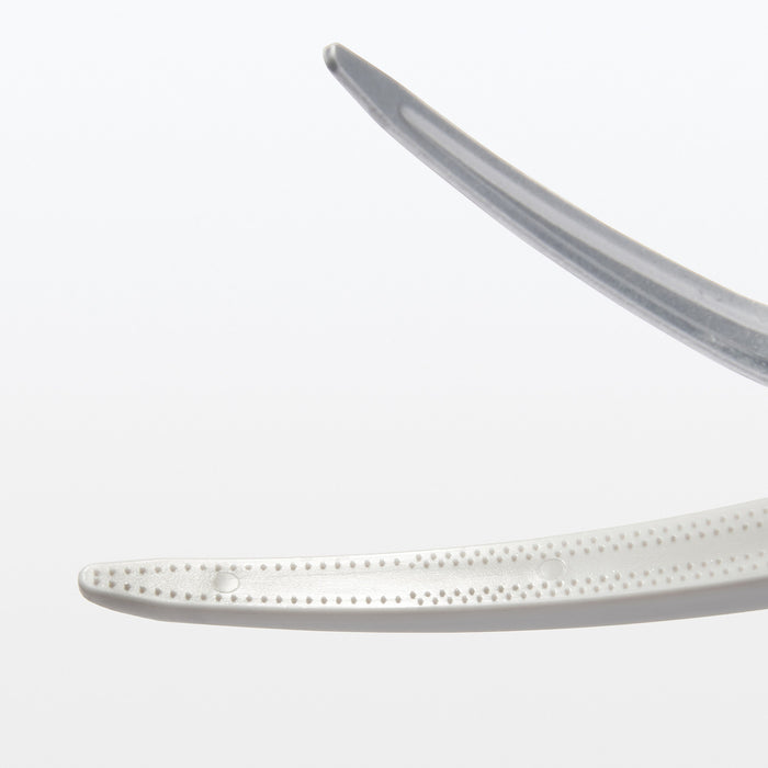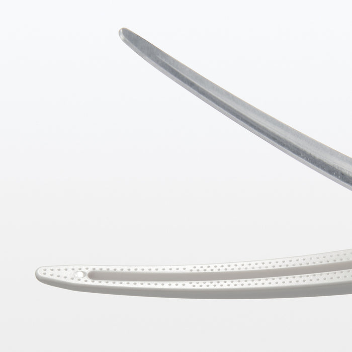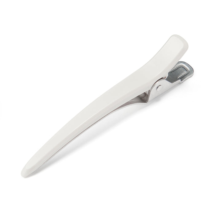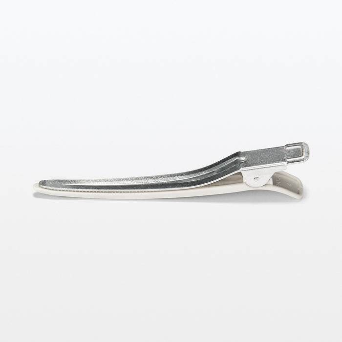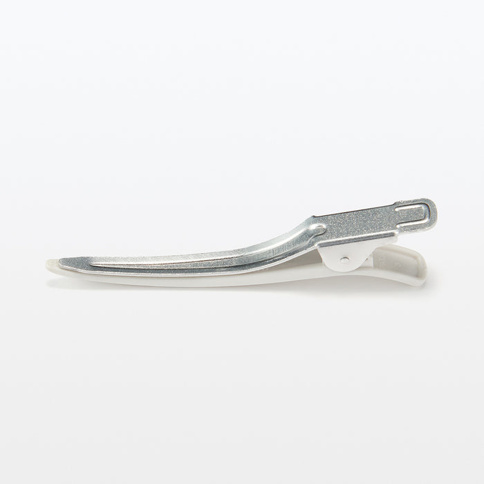 Durable hair clip made from a combination of polycarbonate metal and stainless steel. Curved to better fit your head when styling or trimming.
