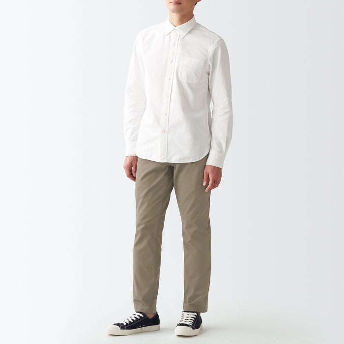These slim-fit chino pants feature a soft, light design crafted from organic cotton. They offer comfortable movement with a 30" (76 cm) inseam and an elastic waist for easy wearing, making them perfect for both casual and formal occasions.