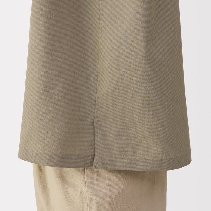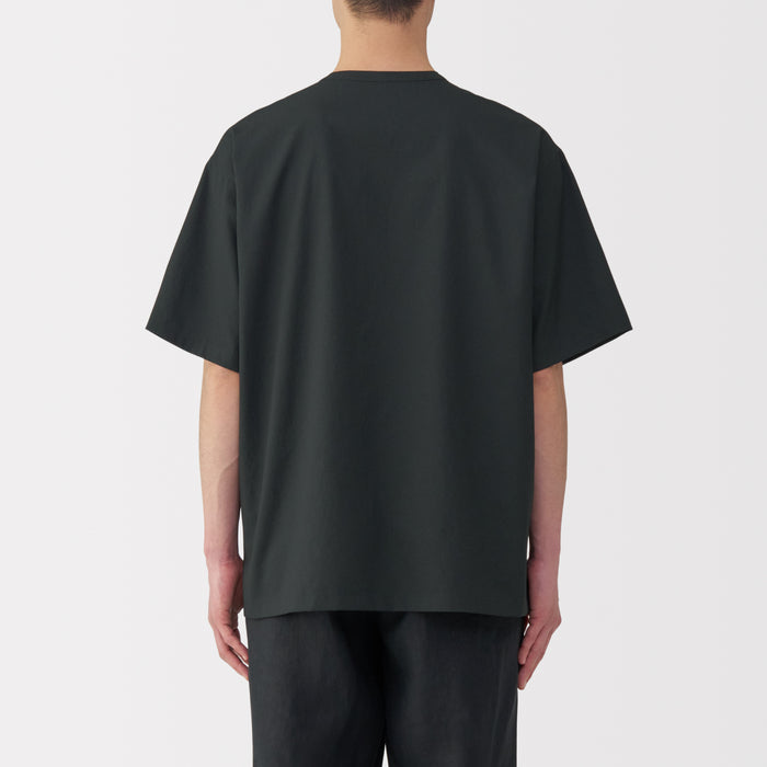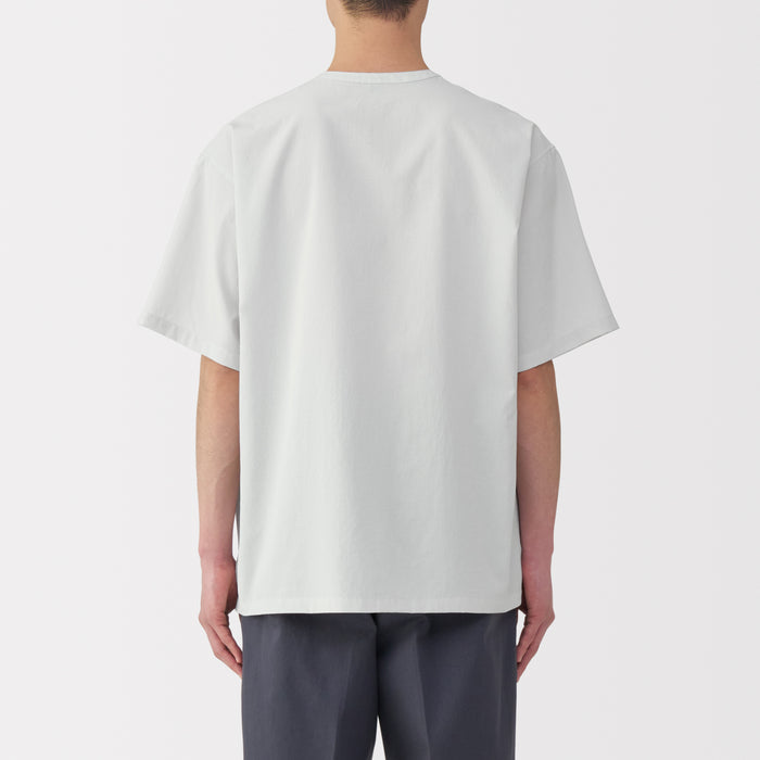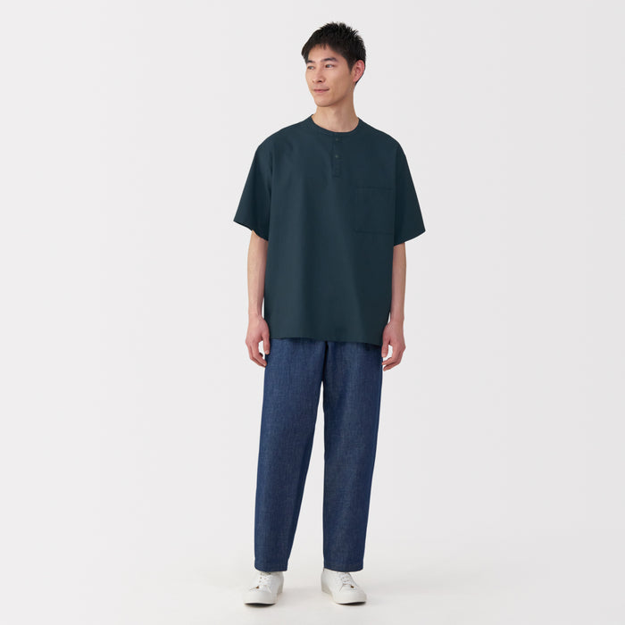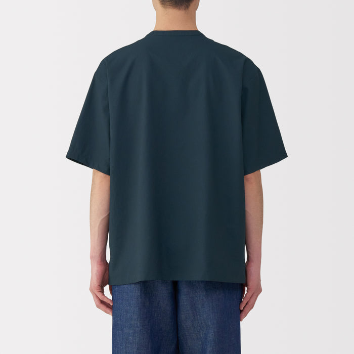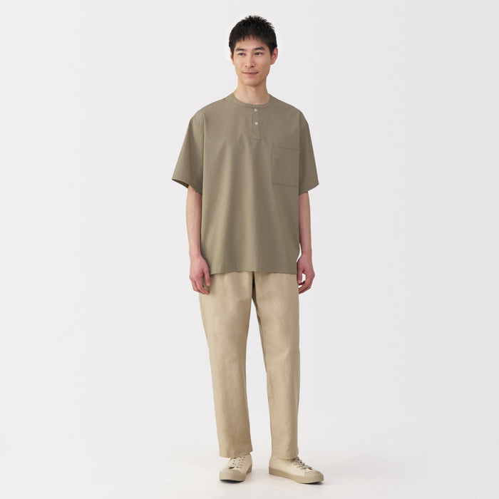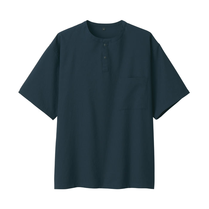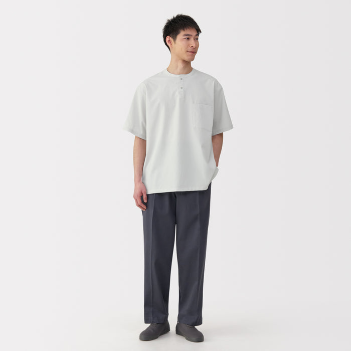 This short sleeve Henley T-shirt is made from an lightweight, quick-drying fabric with tiny ventilation holes created through special processing for breathability. It is designed with a roomy silhouette that is breezy and comfortable to wear on hot days. Made with partially recycled materials.