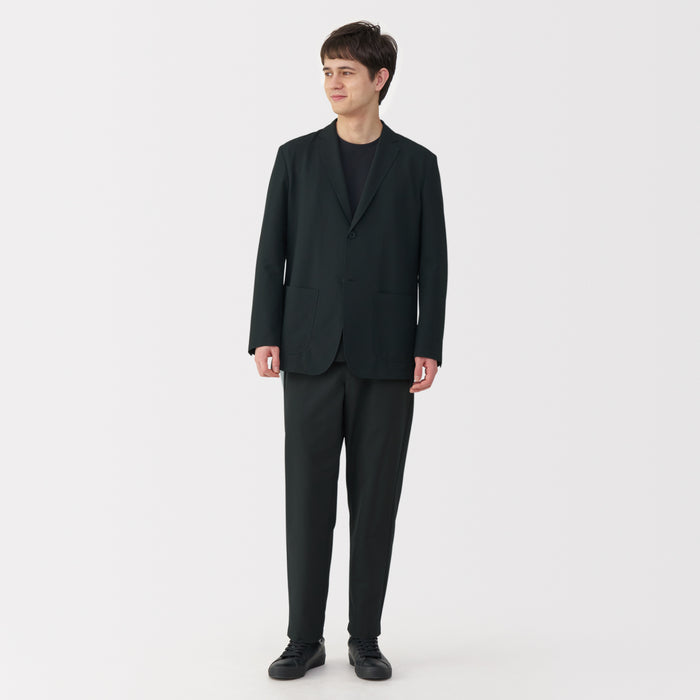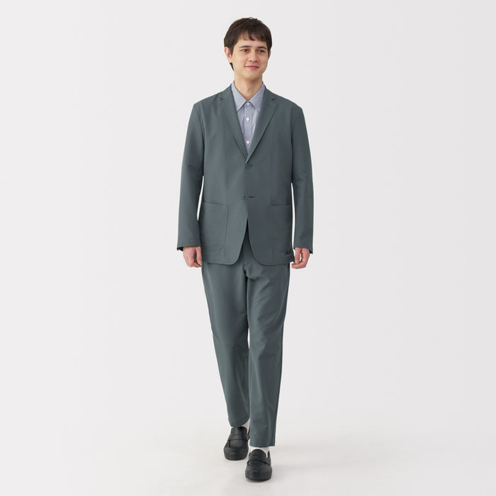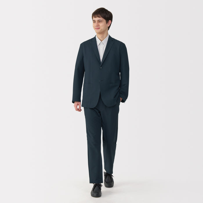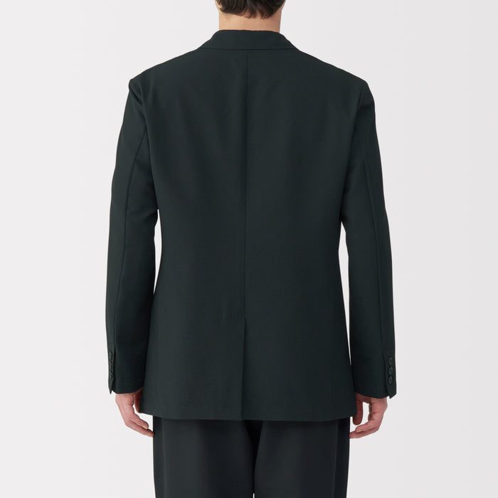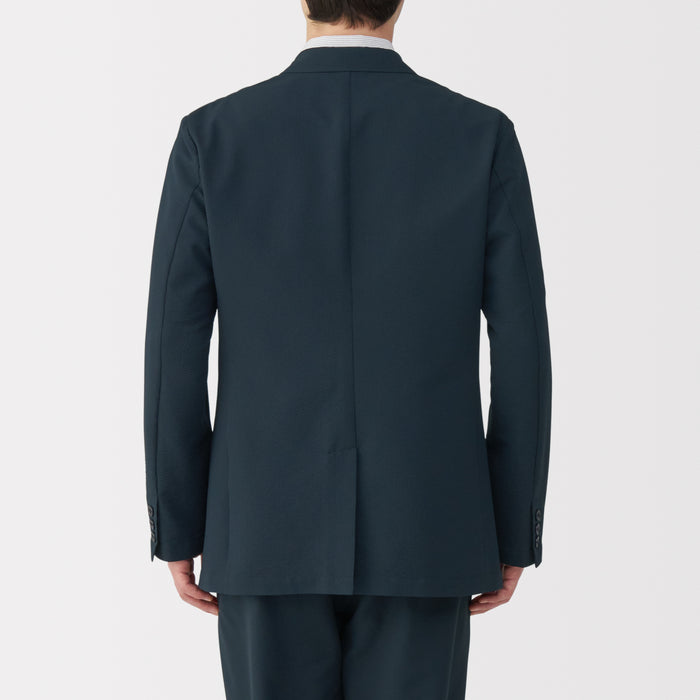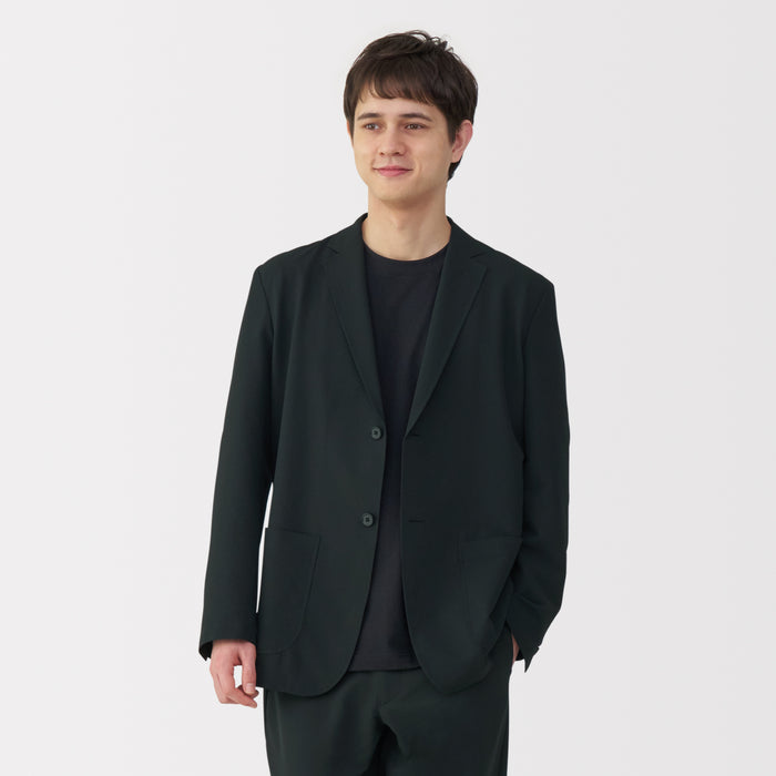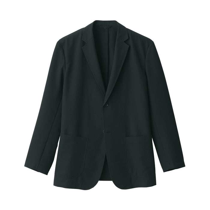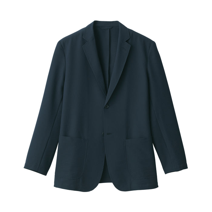 This seersucker jacket is made from an lightweight, quick-drying fabric with tiny ventilation holes created through special processing for breathability. It is designed with a roomy silhouette that is breezy and comfortable to wear on hot days. Made with partially recycled materials.