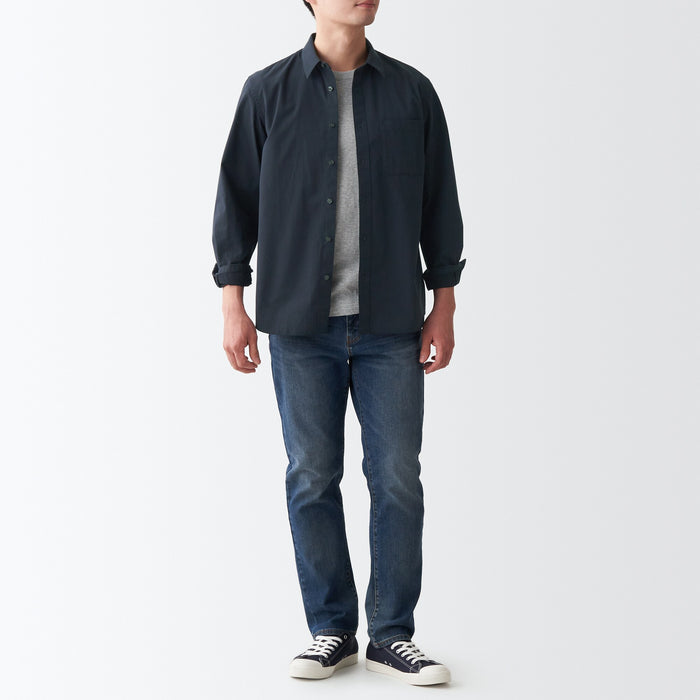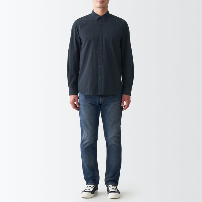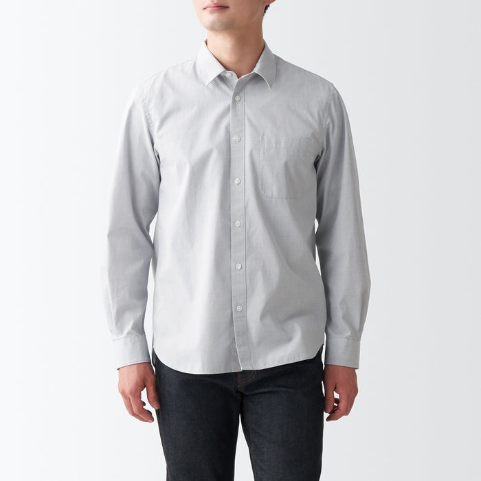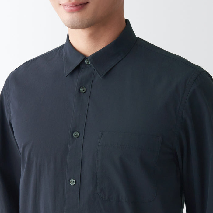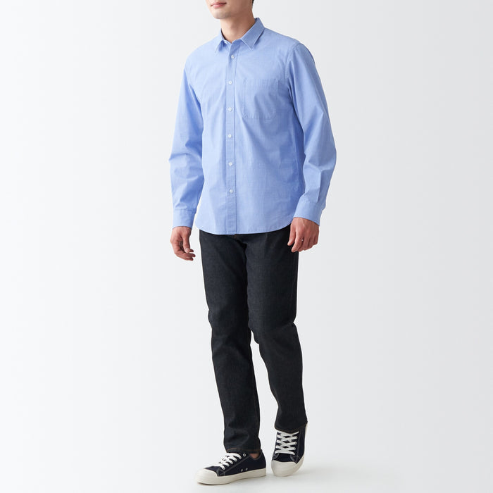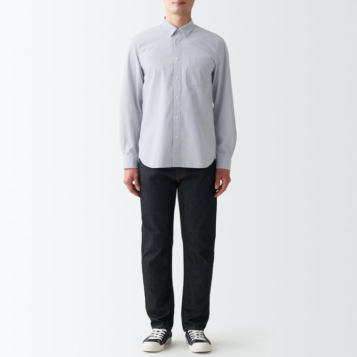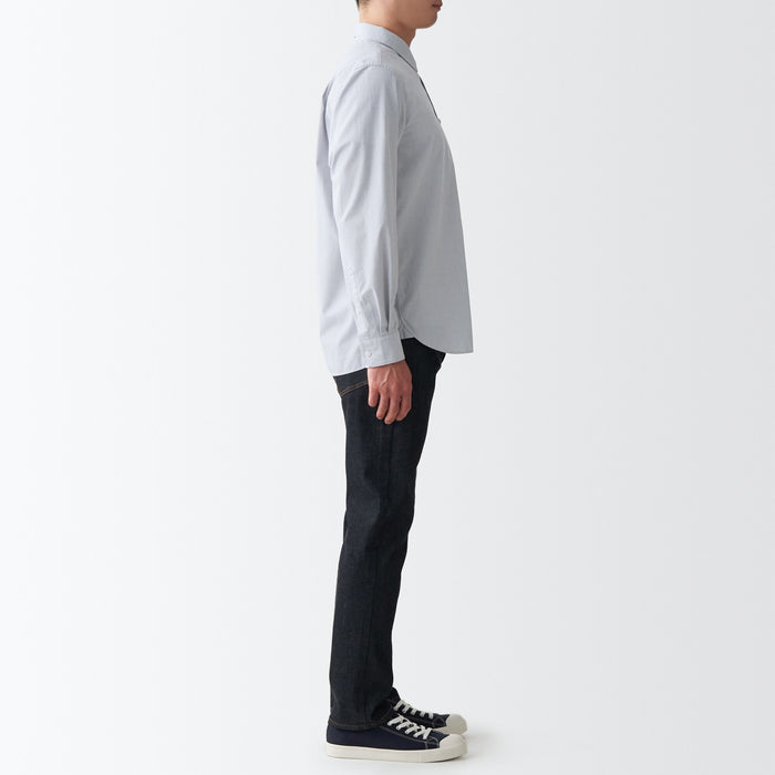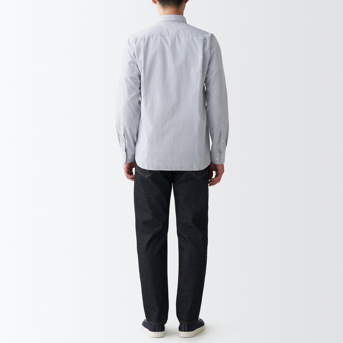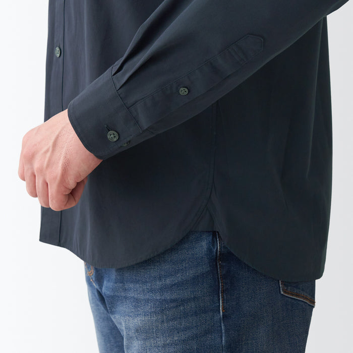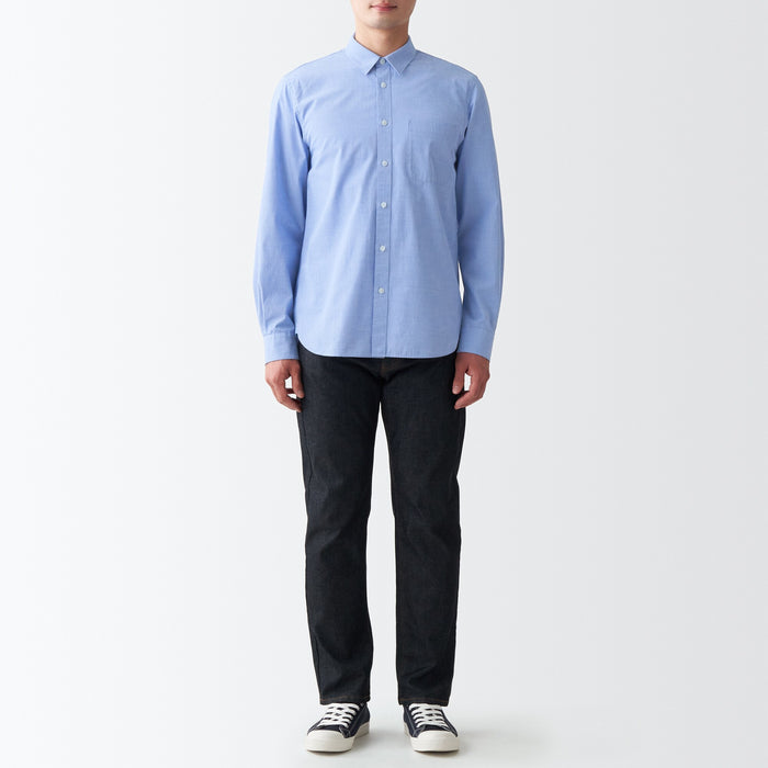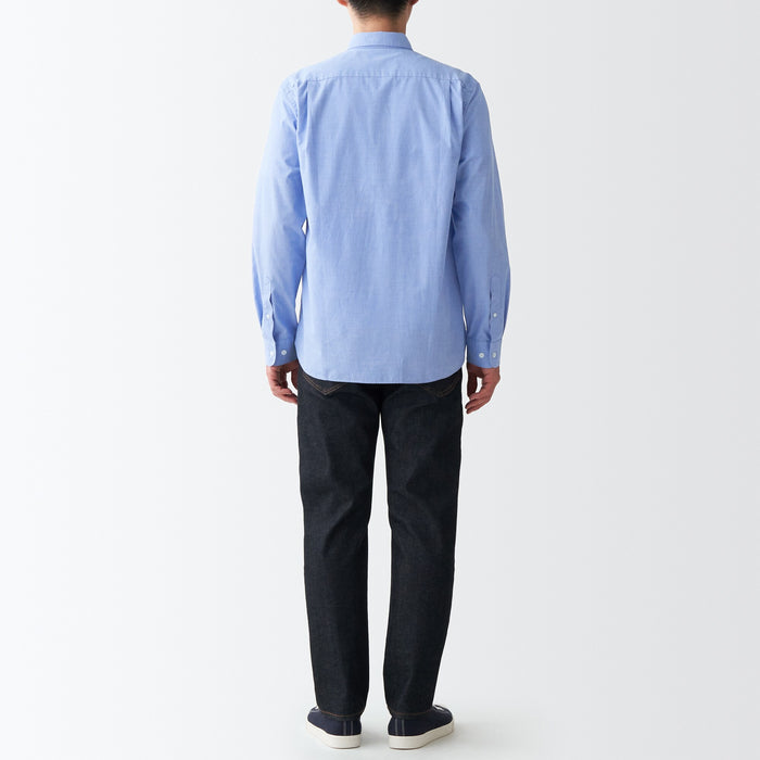 A simple button-down men's shirt for everyday use. The cotton fabric is finished with a special wash treatment that results in a softer surface texture for a worn-in feel from the start. It has a versatile design and classic fit that can be worn both on and off the job, made with a soft yet firm material that gives a clean appearance.