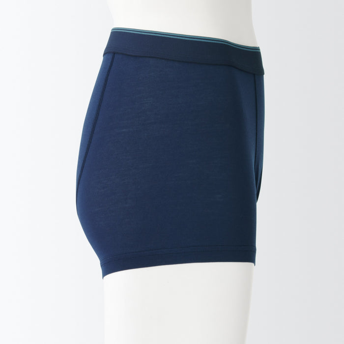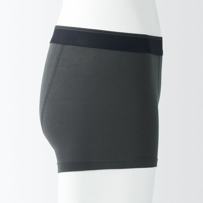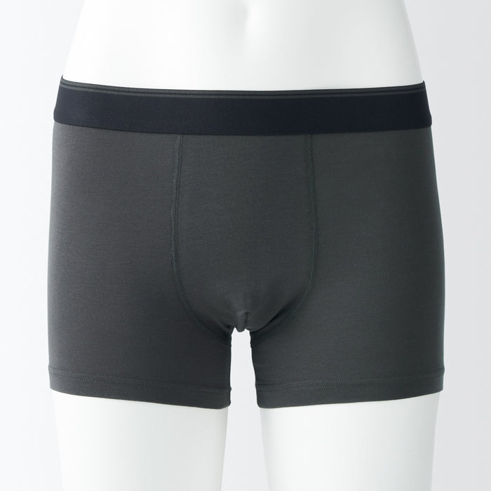 A breathable boxer with a smooth texture made with lyocell fabric. Designed with a low rise and uses a rubber waistband for comfort.