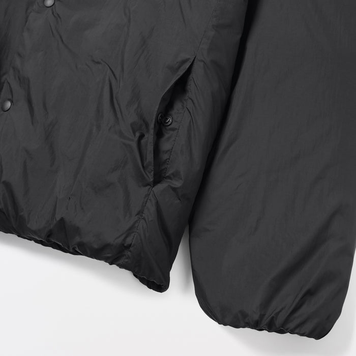 We redesigned the lightweight down outerwear with eco-friendly recycled nylon fabric. While maintaining the swelling power of the down, we have revised the volume to create a more streamlined silhouette. It can be worn both as an inner layer and an outer layer, and can be worn both outside and in the room for a long time.
