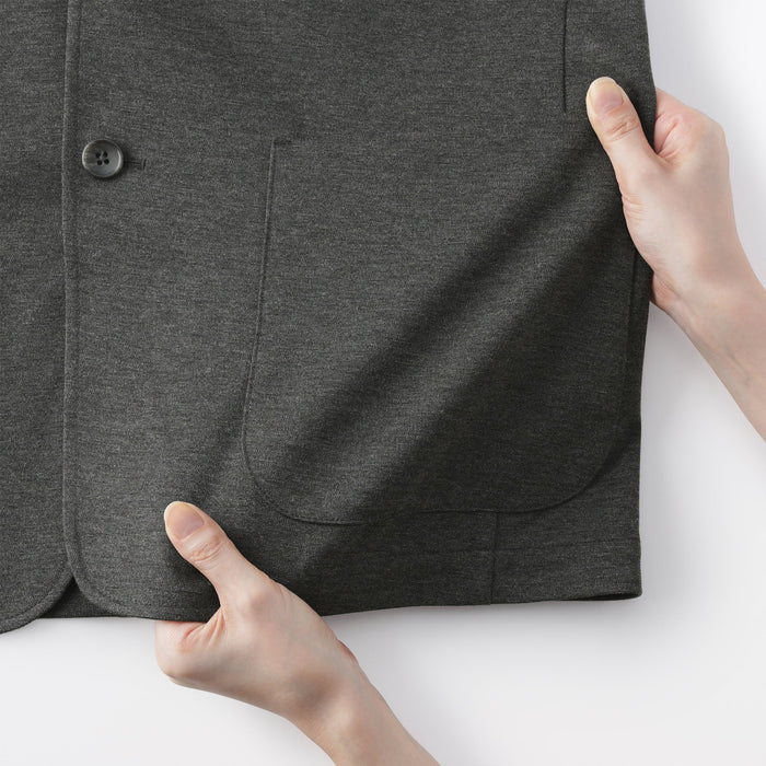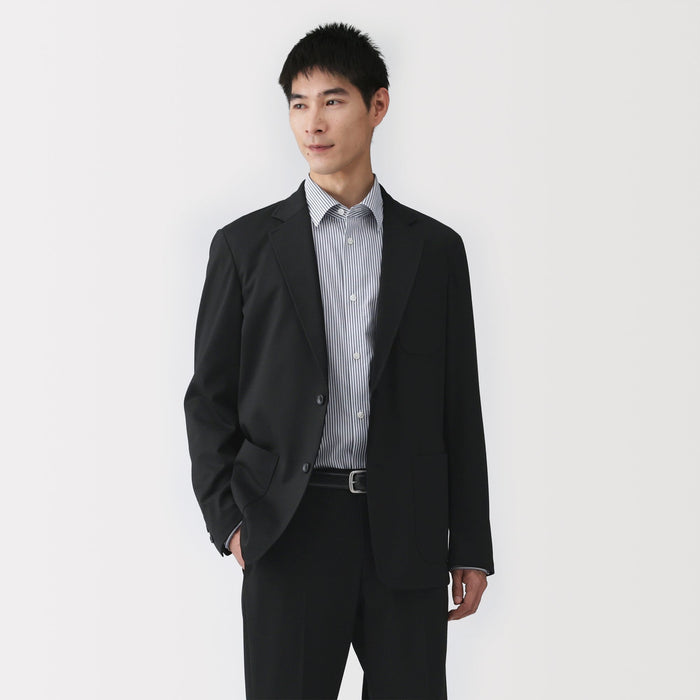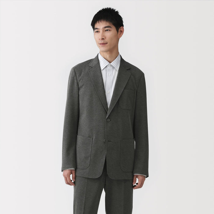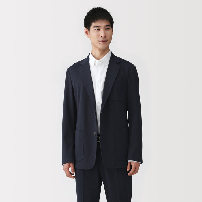 This lightweight men's business jacket features a soft, stretchy jersey fabric that provides all-day comfort. Its sleek design makes it suitable for any occasion. Made from partially recycled materials.