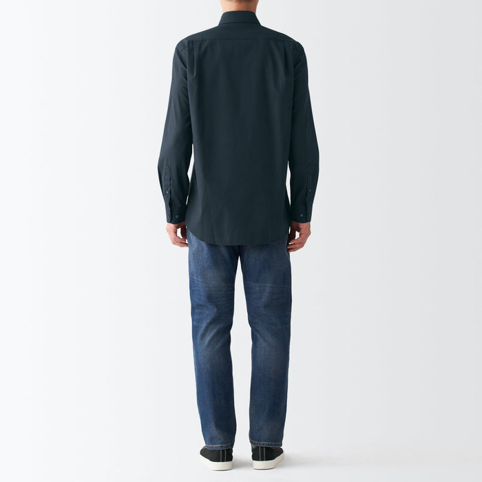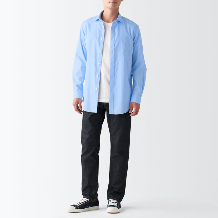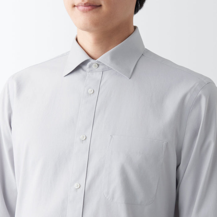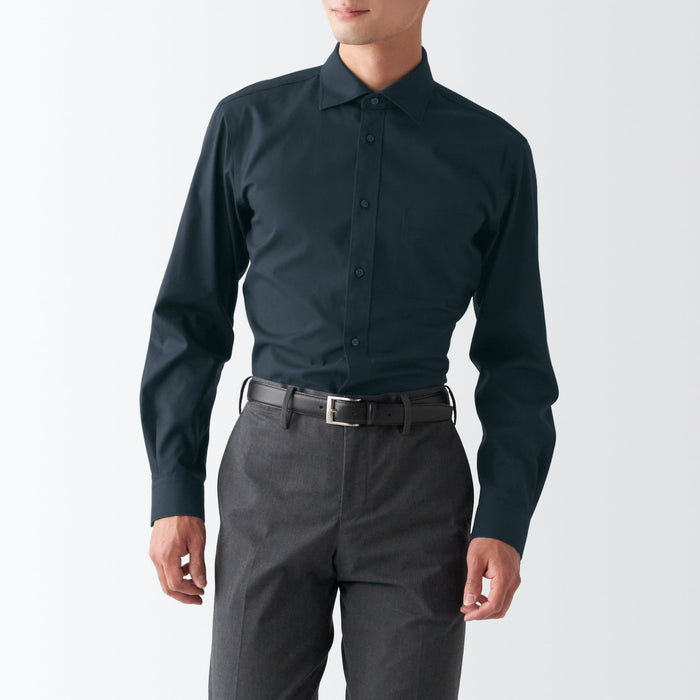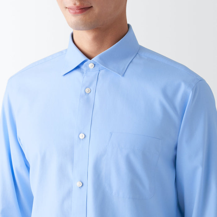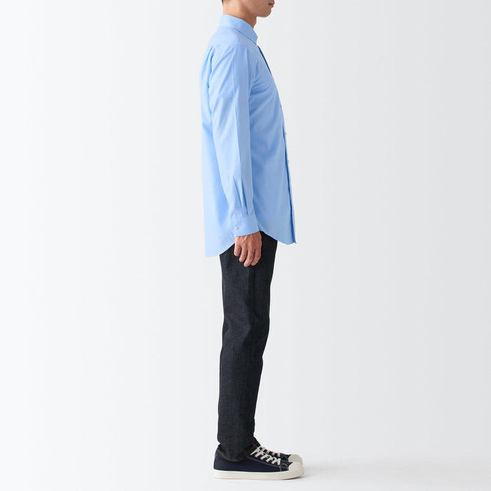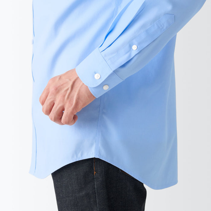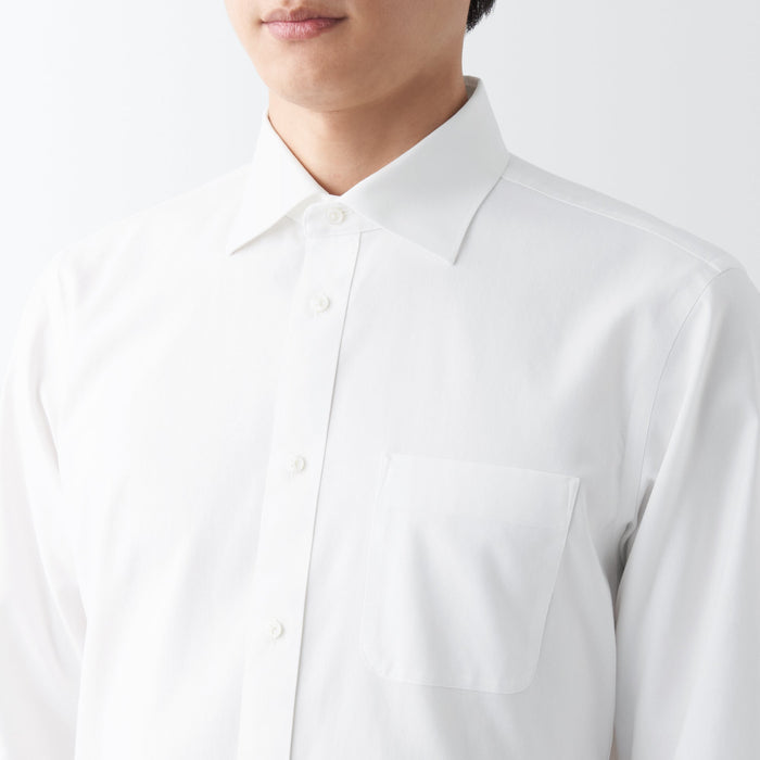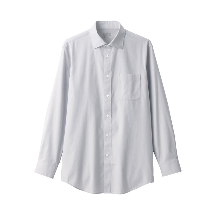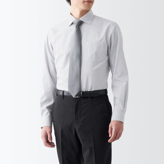 A business shirt is made of 100% cotton and doesn't need ironing. It has been treated to stay wrinkle-free and has special tape in the seams to reduce wrinkles. The collar height is ideal for wearing with a tie, and the length is perfect for tucking in.