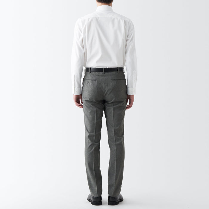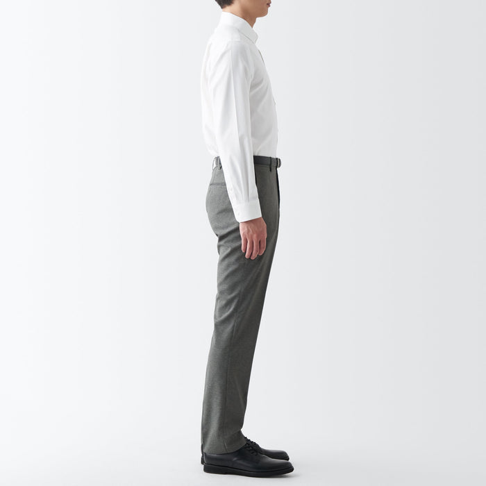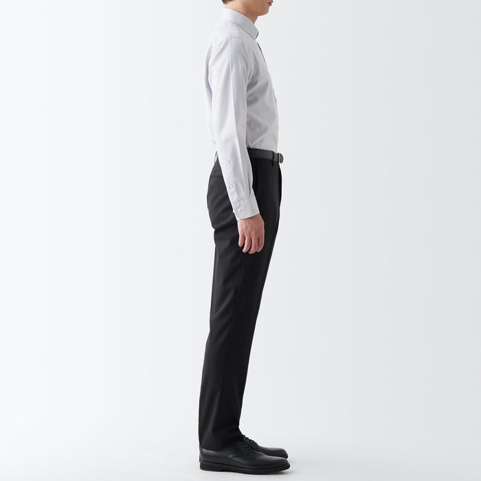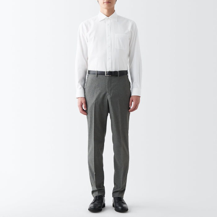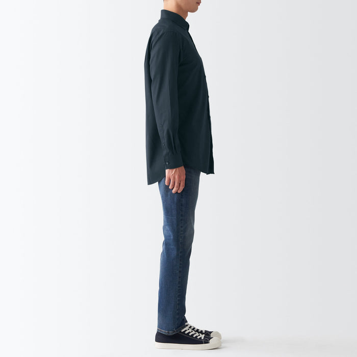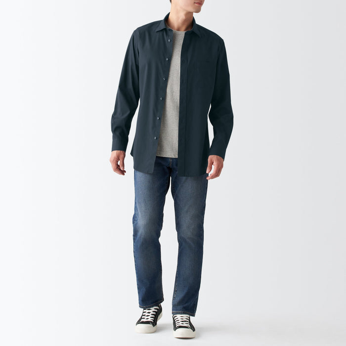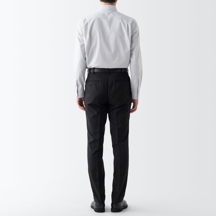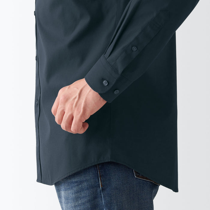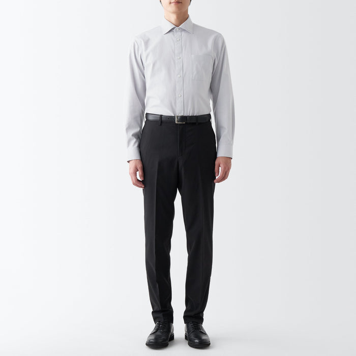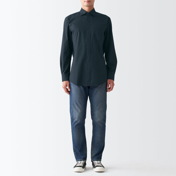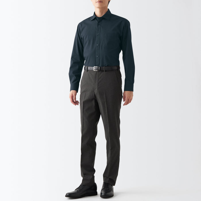 A business shirt is made of 100% cotton and doesn't need ironing. It has been treated to stay wrinkle-free and has special tape in the seams to reduce wrinkles. The collar height is ideal for wearing with a tie, and the length is perfect for tucking in.