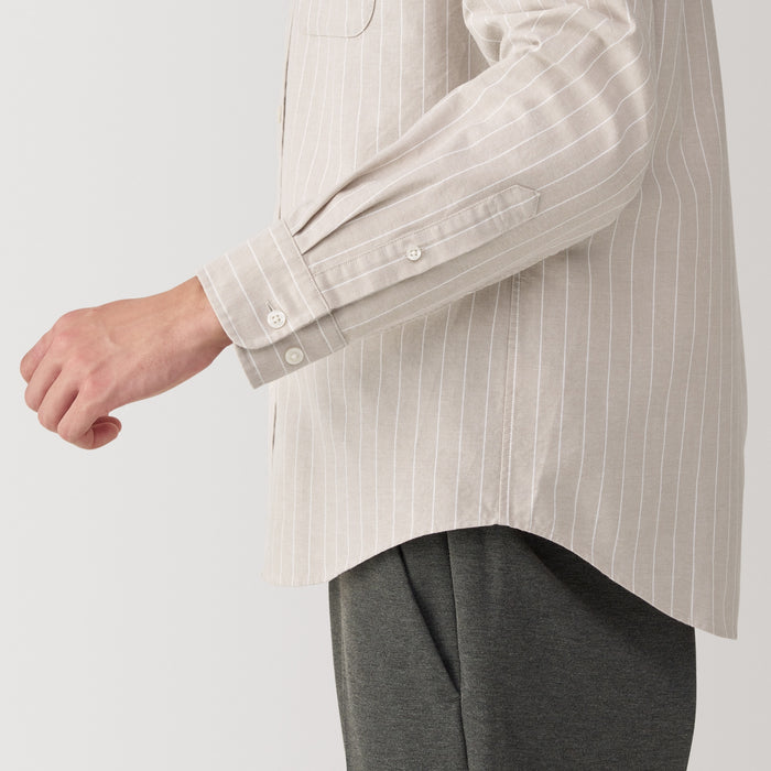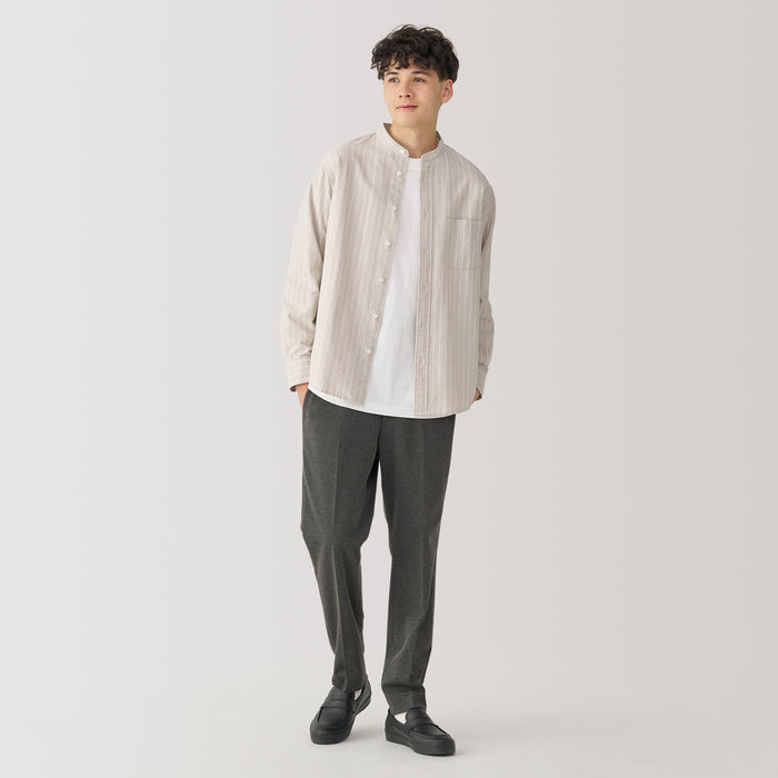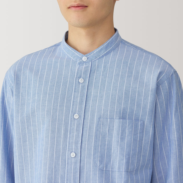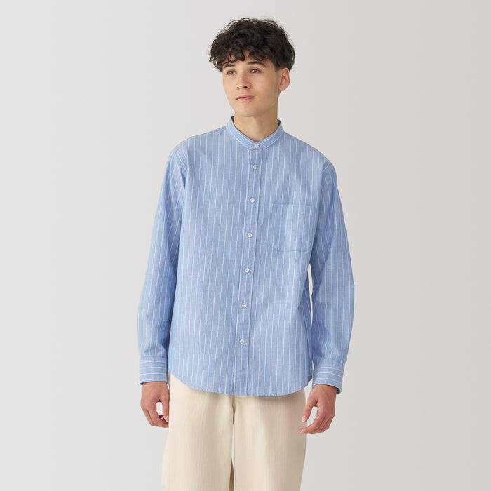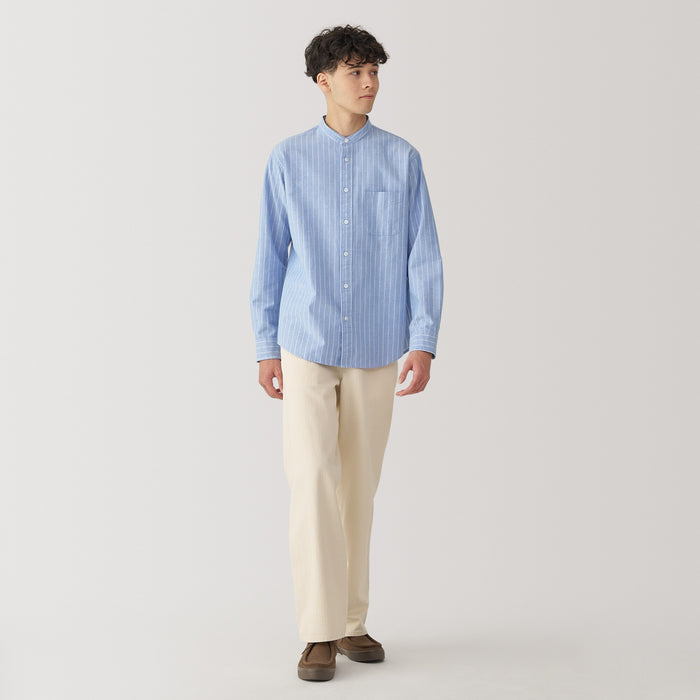 Men's Washed Oxford Stand Collar Long Sleeve Shirt