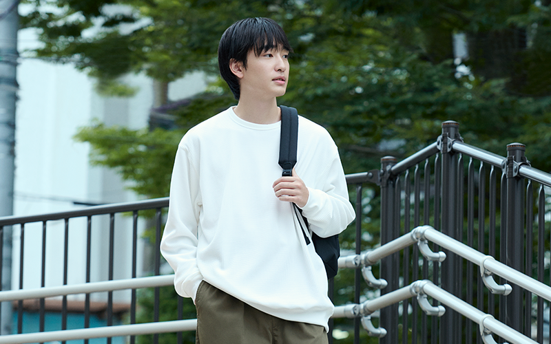 View full detailsA long-sleeved t-shirt made with brushed fabric for warmth and a soft feel. Item Size Chart Size Chest Width Shoulder Width Hem Width Sle...