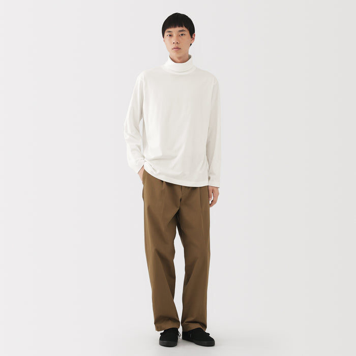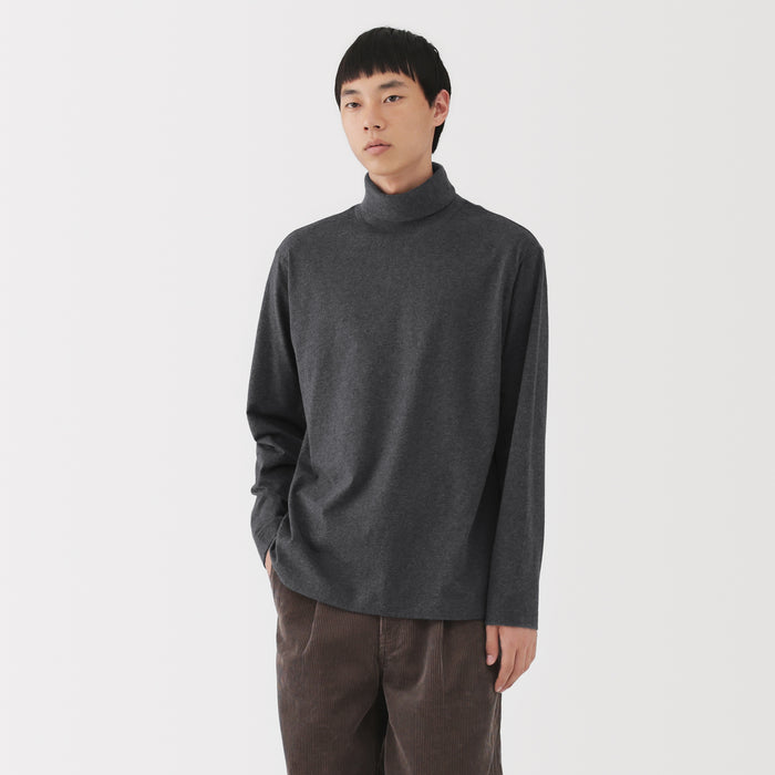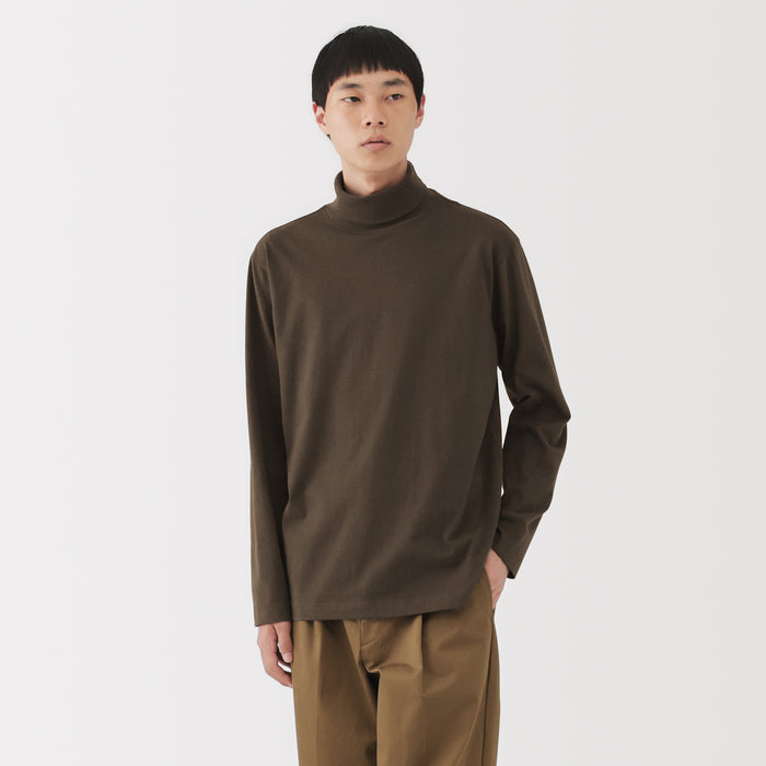 A men's long-sleeved turtleneck t-shirt made with brushed cotton jersey fabric for warmth and a soft feel. Perfect to keep you warm in fall and winter.