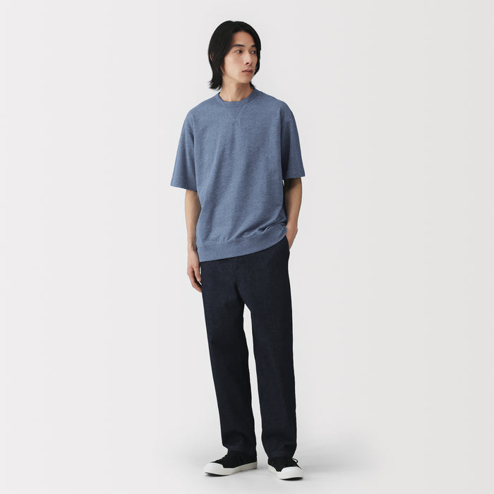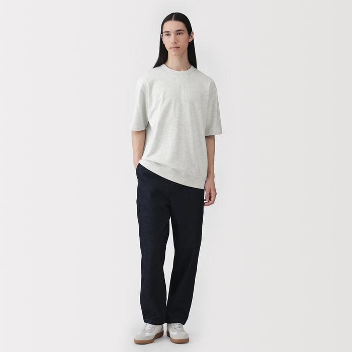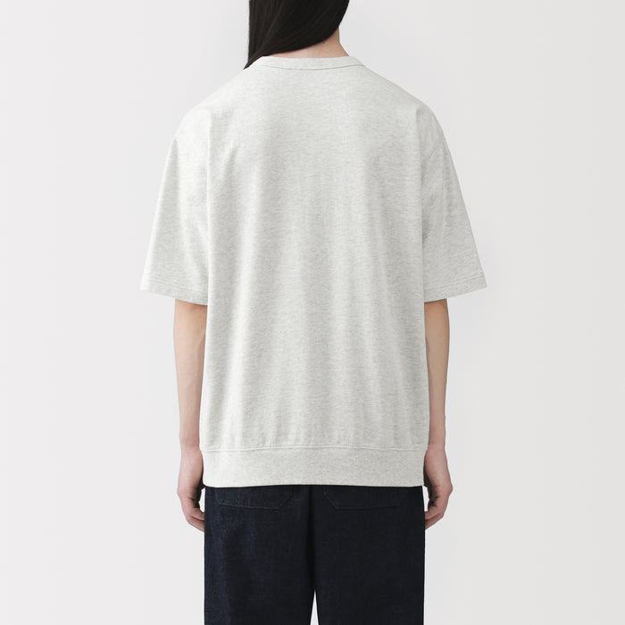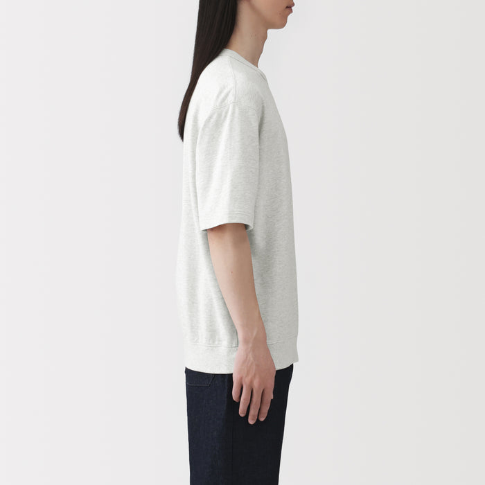 A men's half-sleeve t-shirt made from a lightweight organic cotton sweatshirt material. Soft and moderately thick, it is comfortable for everyday wear.