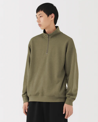 View full detailsThis men's half zip pullover is made with a blend of cotton and recycled polyester. It is knitted in a double layered structure that keeps it airy ...