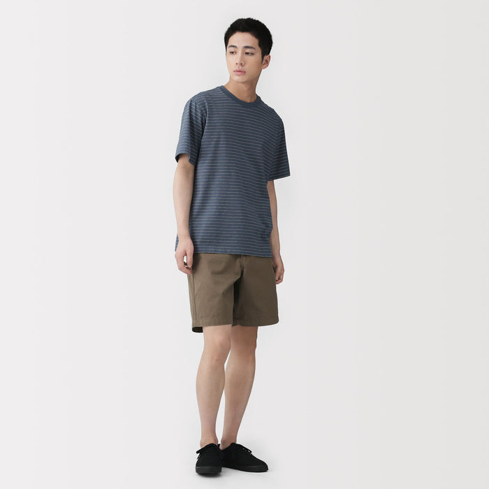 Comfortable men's shorts made with a soft organic cotton chino fabric. The elasticized back and hidden adjustable drawstring in the waistband ensures the perfect fit.