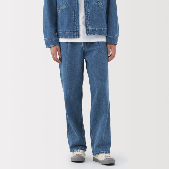 Men's denim pants designed with a relaxed silhouette that gives you room to move comfortably all day. By using a fabric that mixes organic cotton with natural kapok fiber, an environmentally friendly plant grown without pesticides, it is softer and lighter than conventional 100% cotton.
