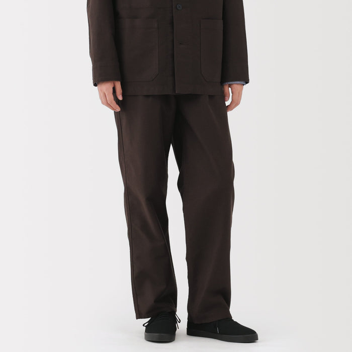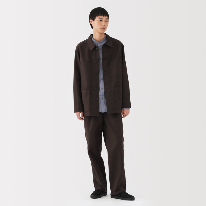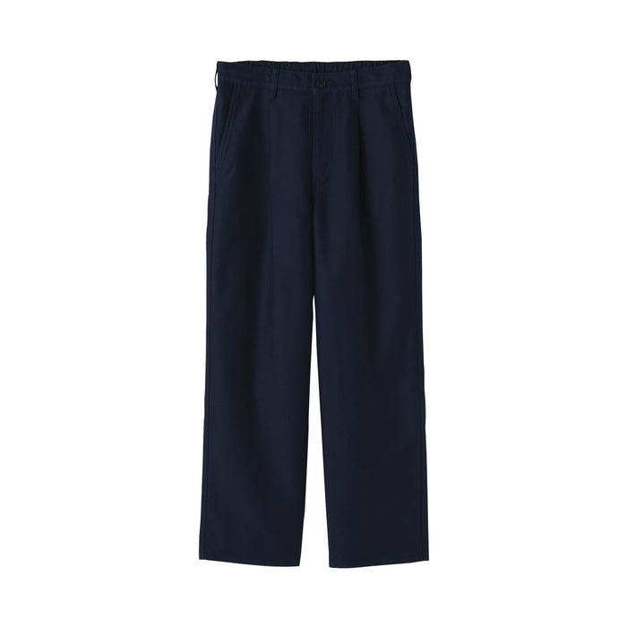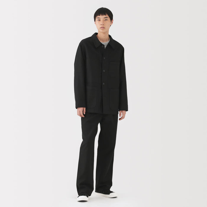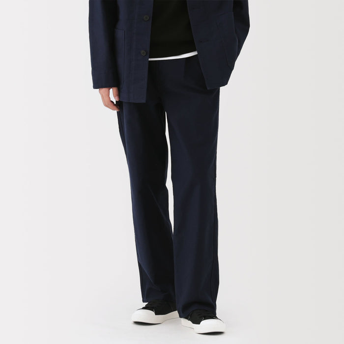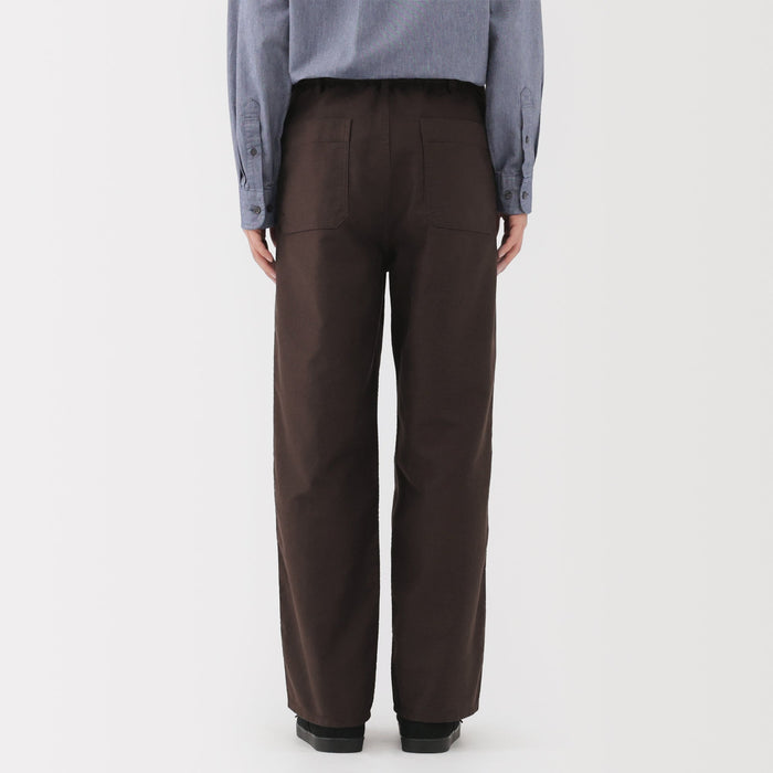 Men's work trousers designed with a slightly wide, straight silhouette that gives you room to move comfortably all day. The soft, suede-like texture of moleskin brings a refined look to any outfit while also keeping you warm. The legs are not too wide nor too slim, making it easy to pair with any top.
