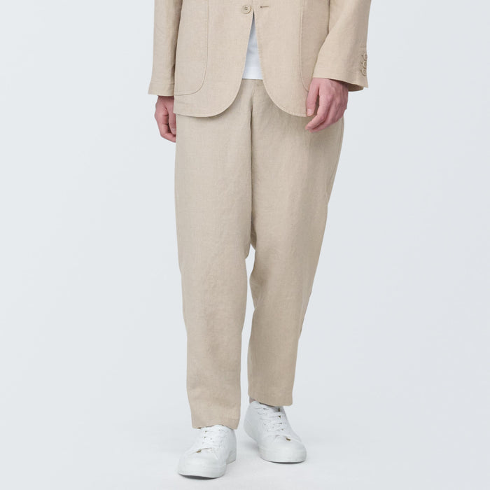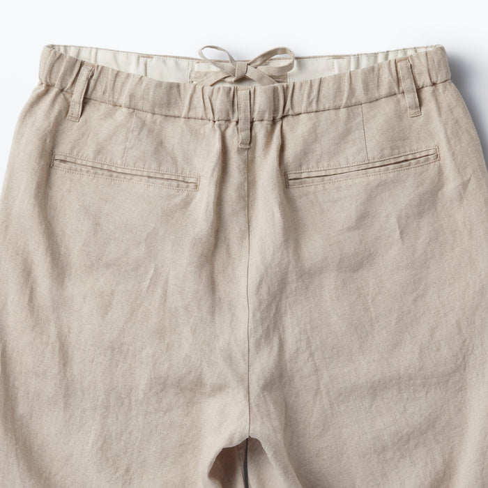Tapered pants made with cool, breathable linen. It features a soft, washed-out texture that fits and feels better with each wear. It has a drawstring on the inner waist for an adjustable fit.