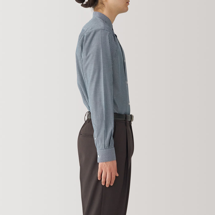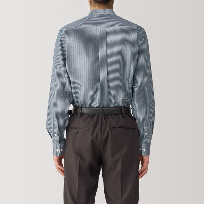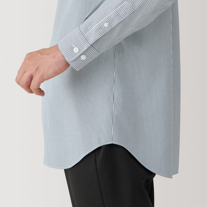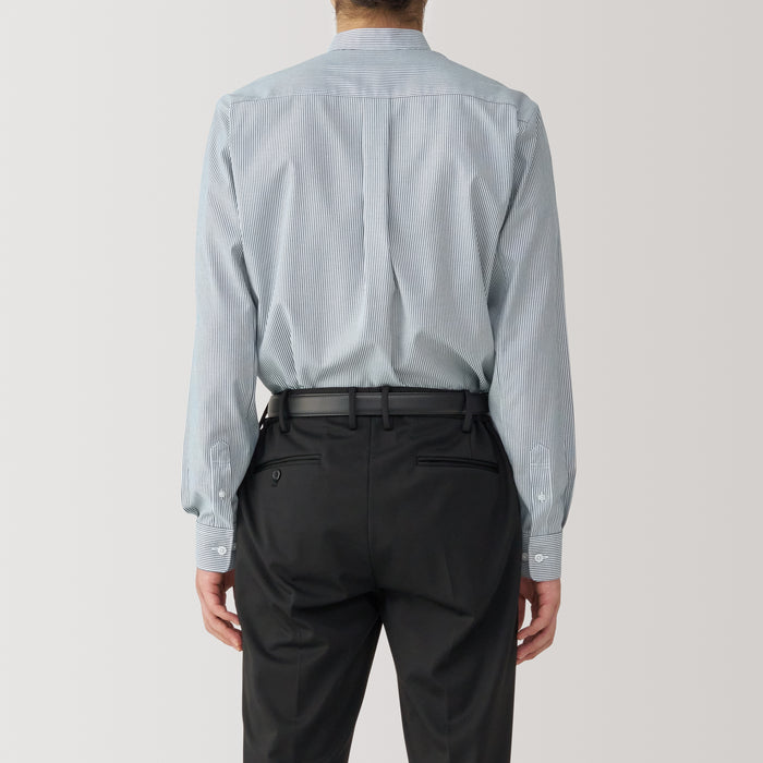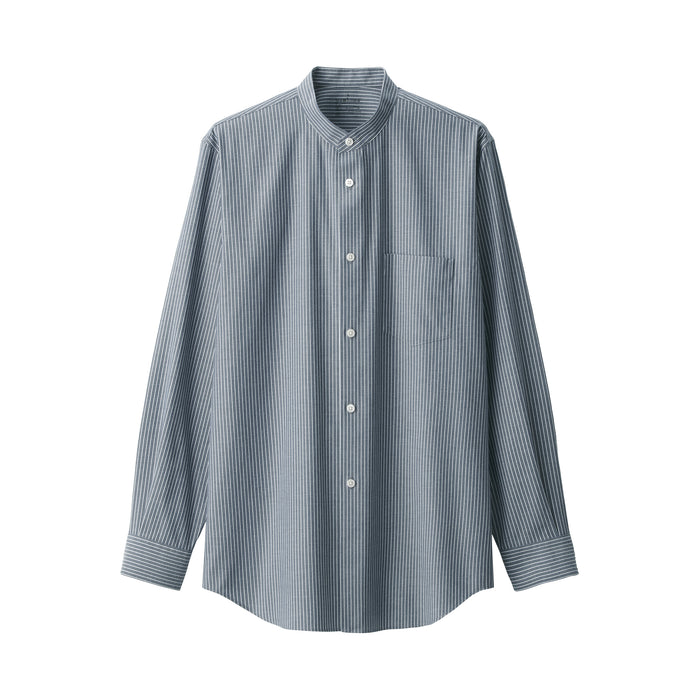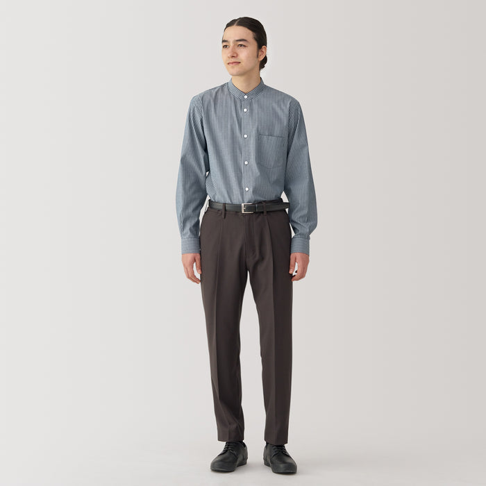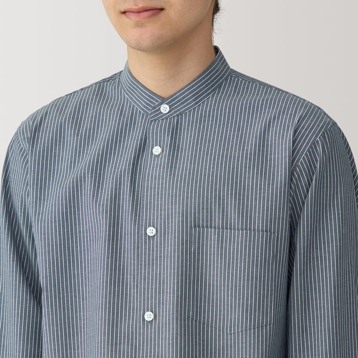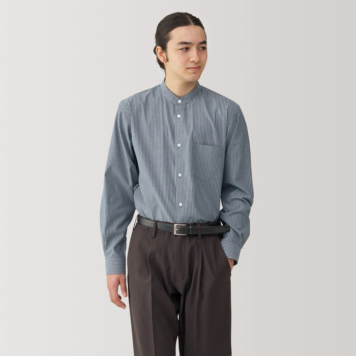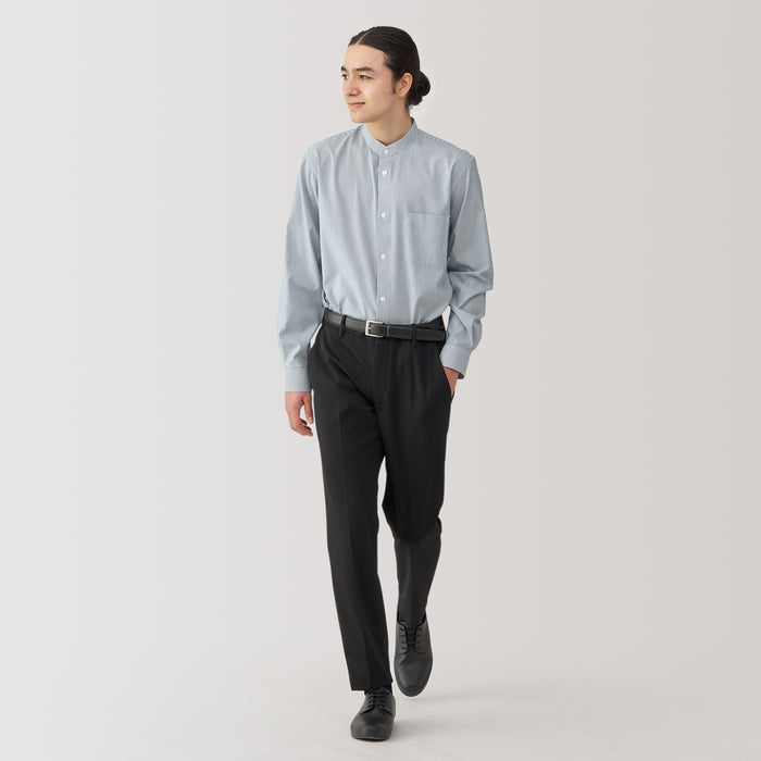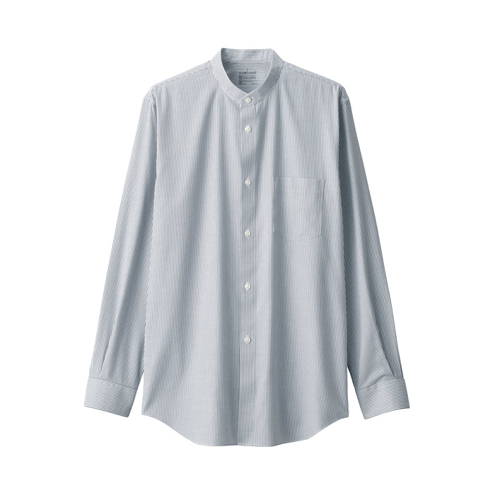 A stand collar business shirt is made of 100% cotton and doesn't need ironing. It has been treated to stay wrinkle-free and has special tape in the seams to reduce wrinkles. The length is perfect for tucking into trousers.
