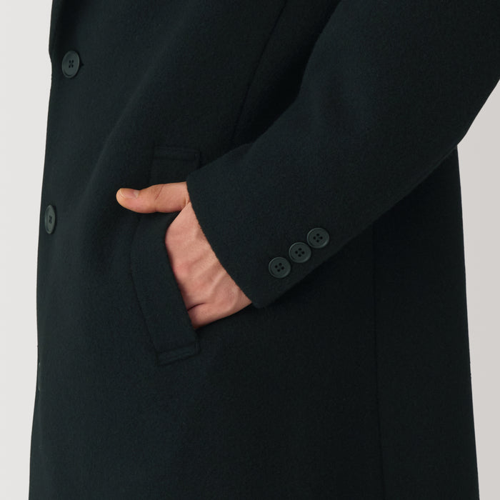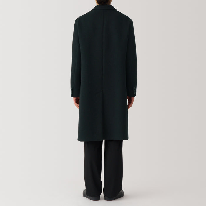 This elegant Chester coat is made with brushed, plump fabric that will keep you warm in colder seasons. The wool made mostly with recycled and reclaimed wool.