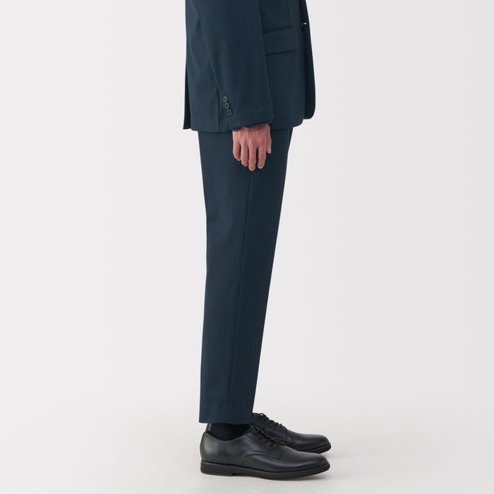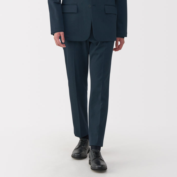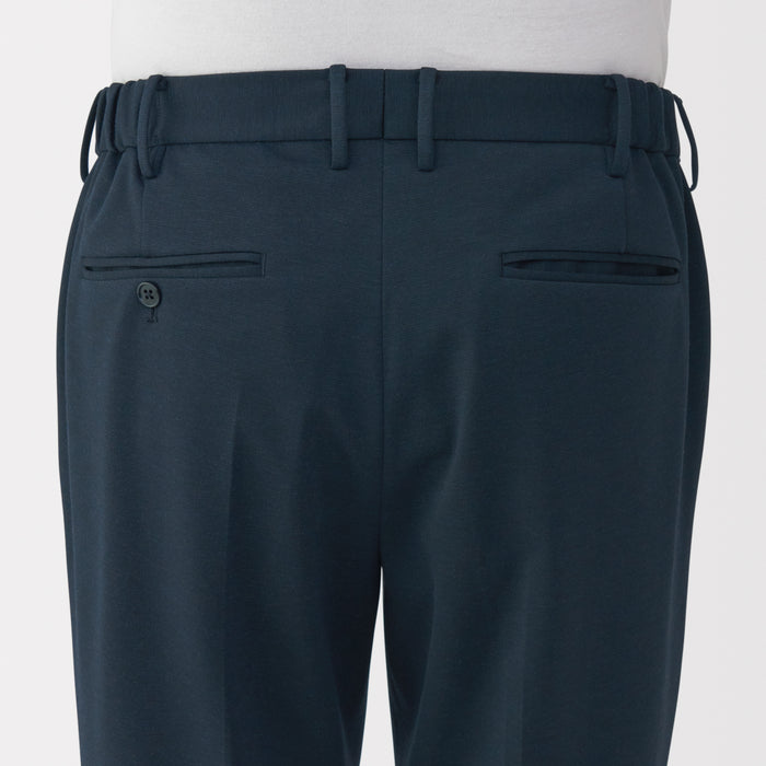 These pants feature a sleek silhouette, crafted from a low-maintenance fabric that offers just the right amount of stretch for all-day comfort. They allow for easy movement while maintaining a polished look, making them ideal for any business occasion. Wear it alone, or complete the set with Men's Stretch Jersey Jacket.