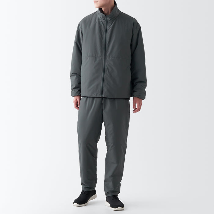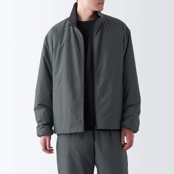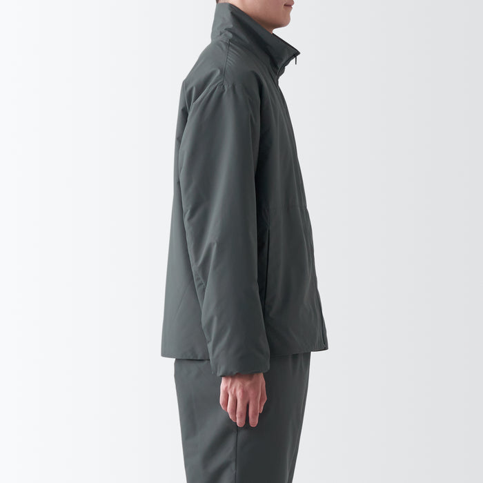 Water Repellent and windproof outer shell, and warm, moisture-absorbing padding on the inside.