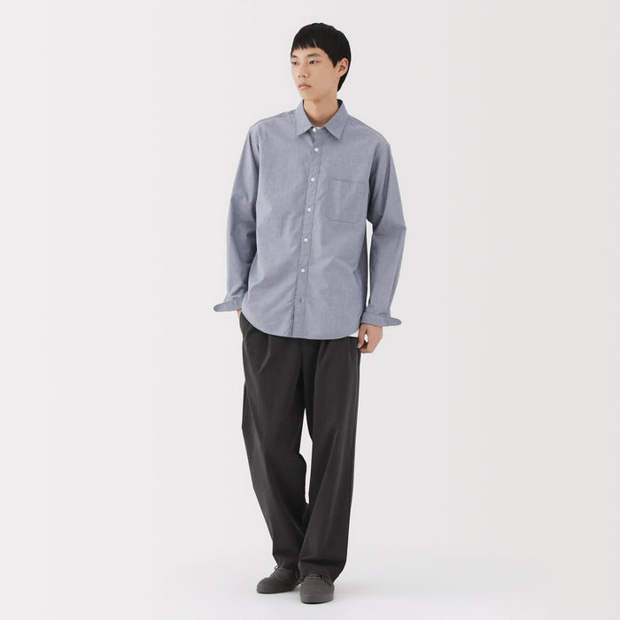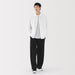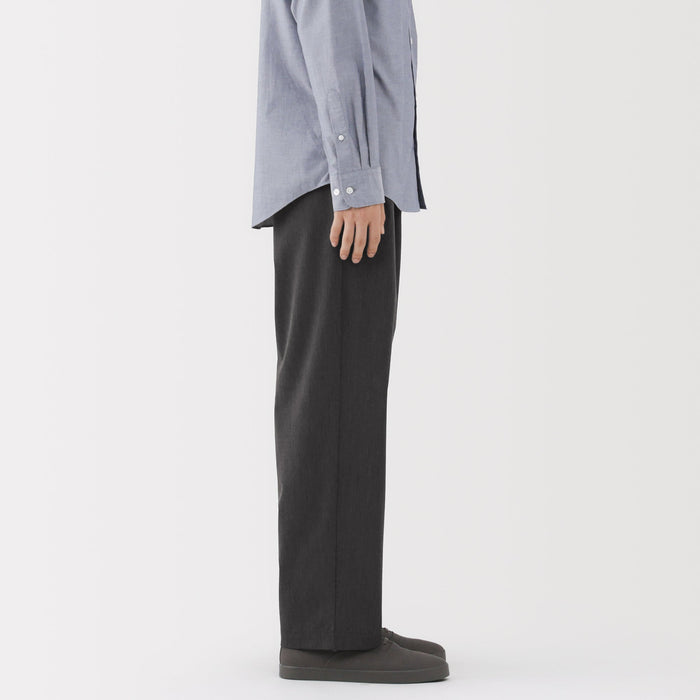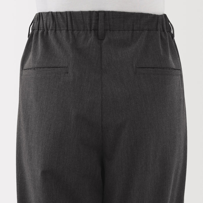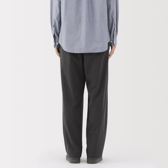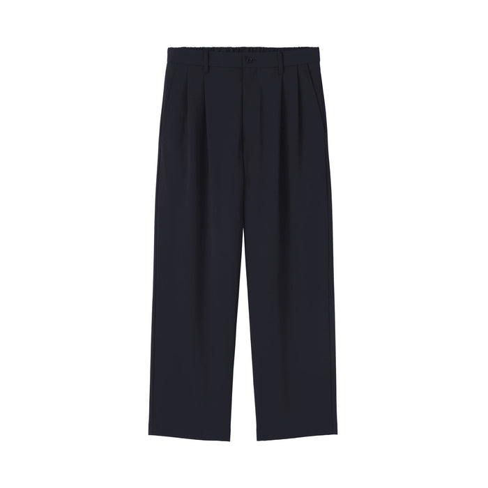 Wide-leg, relaxed fit pants with front darts, made with recycled material that dries quickly after washing. The darts add a three-dimensional effect to the front of the pants. There is a drawstring on the inside of the waistband for an adjustable fit.