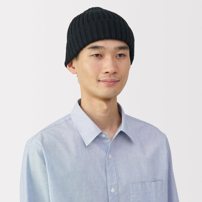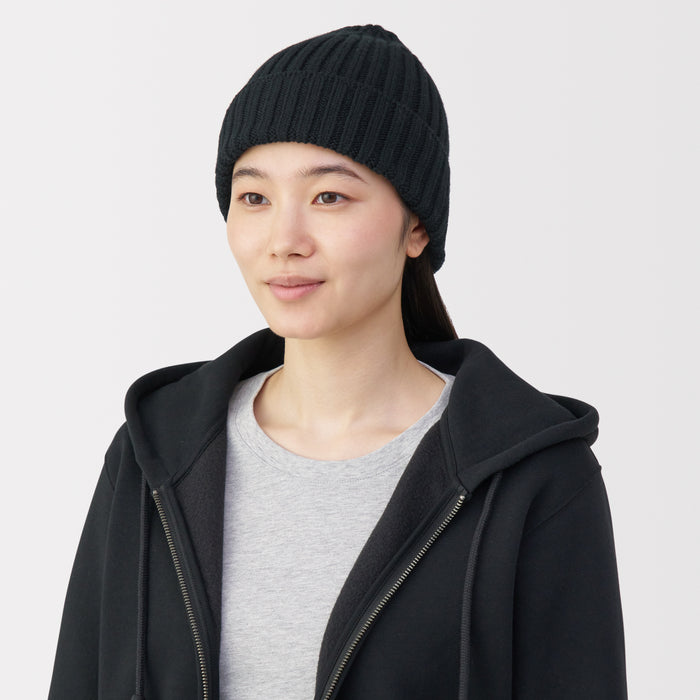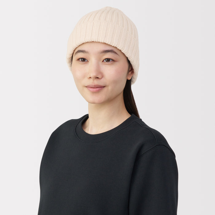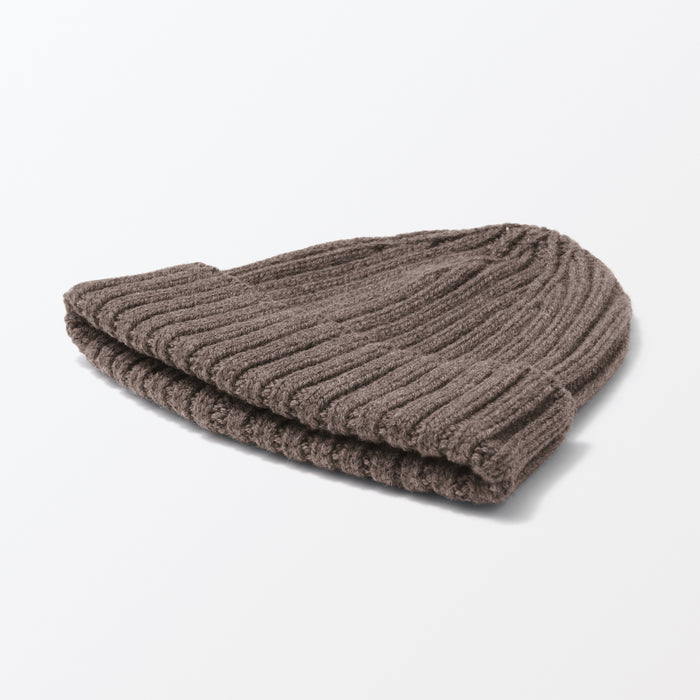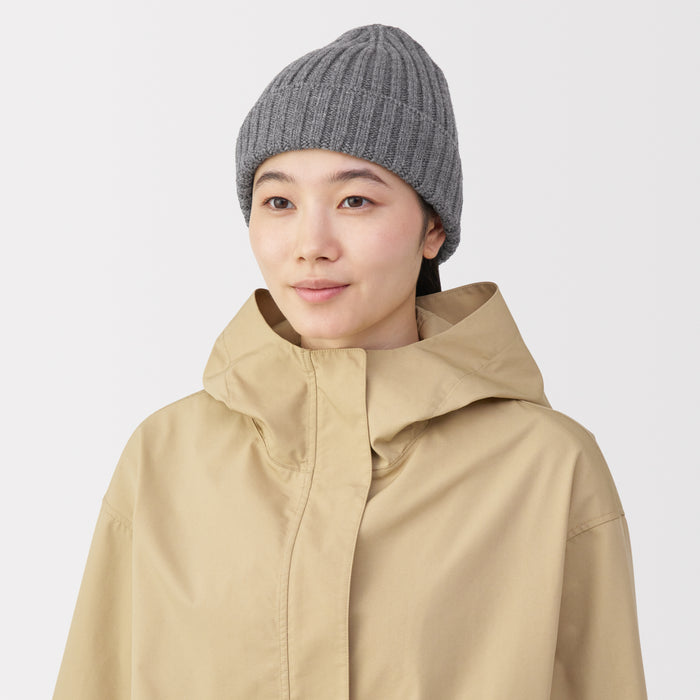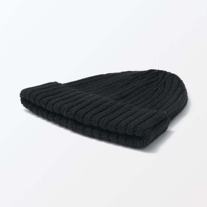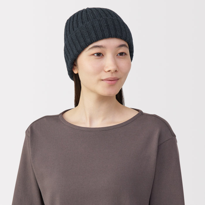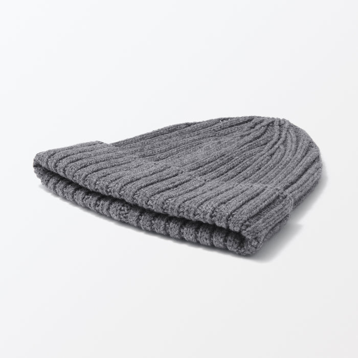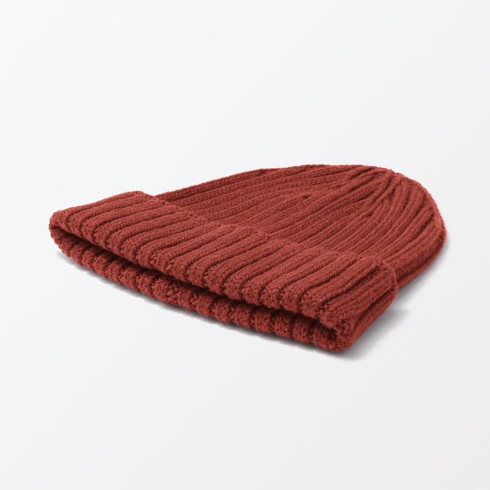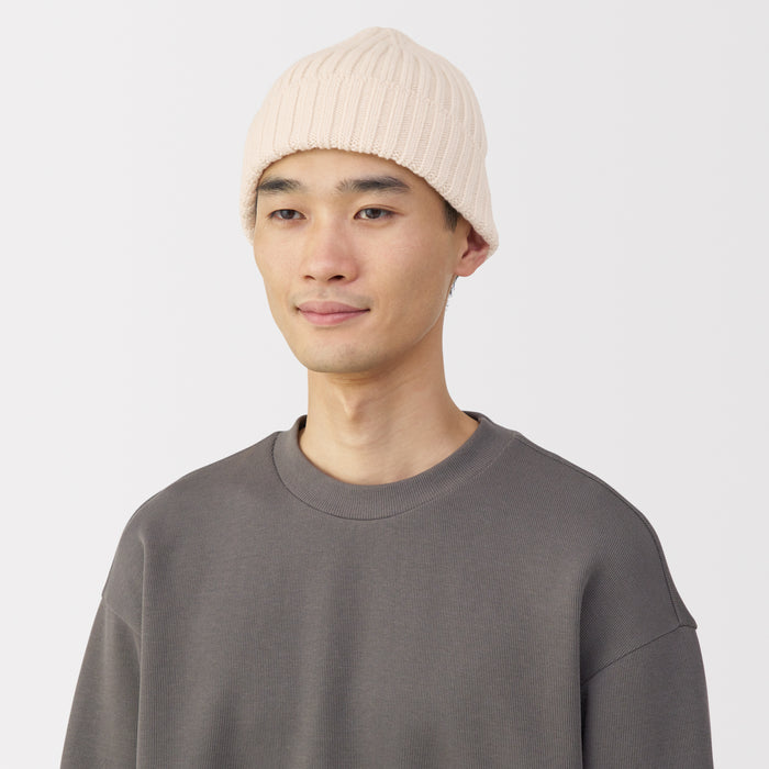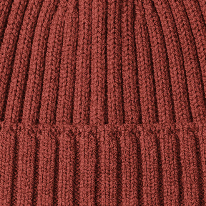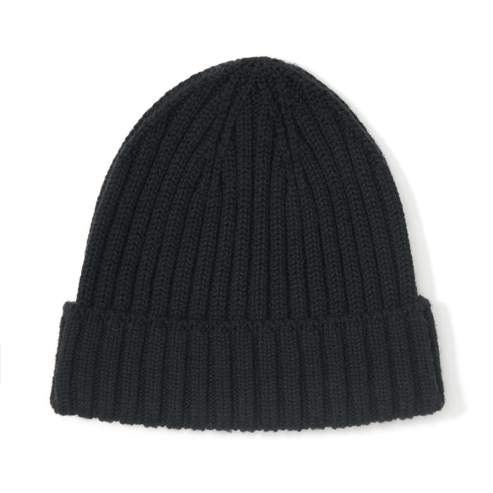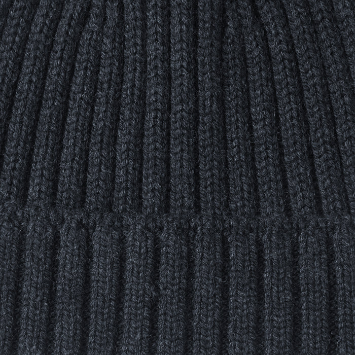 Stay warm and cozy in this beanie, composed of 100% merino wool with a ribbed design.