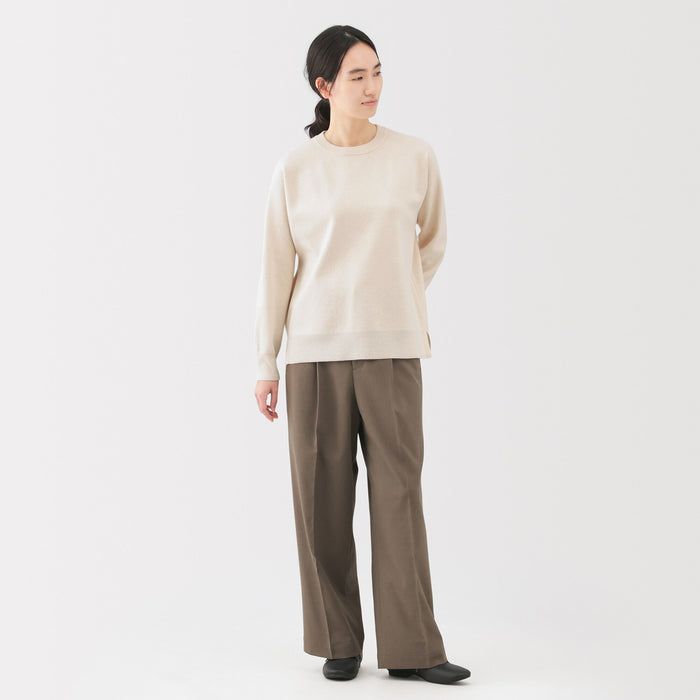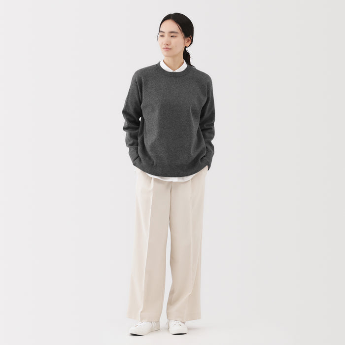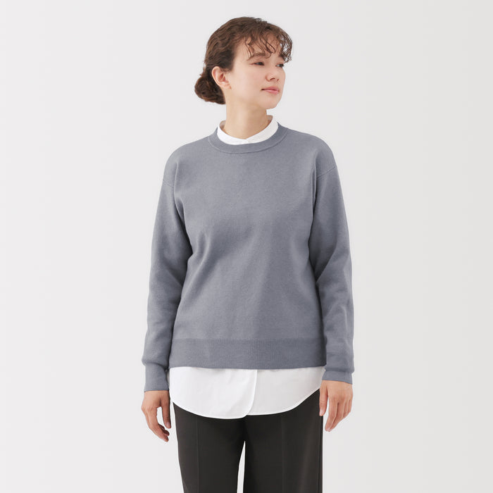 This women's crew neck sweater is firm and stretchy for a comfortable fit, made with a polyester blend to keep it lightweight and smooth. It's just the right thickness to keep its structure with enough stretch. It is washable and easy to care for at home for convenience.