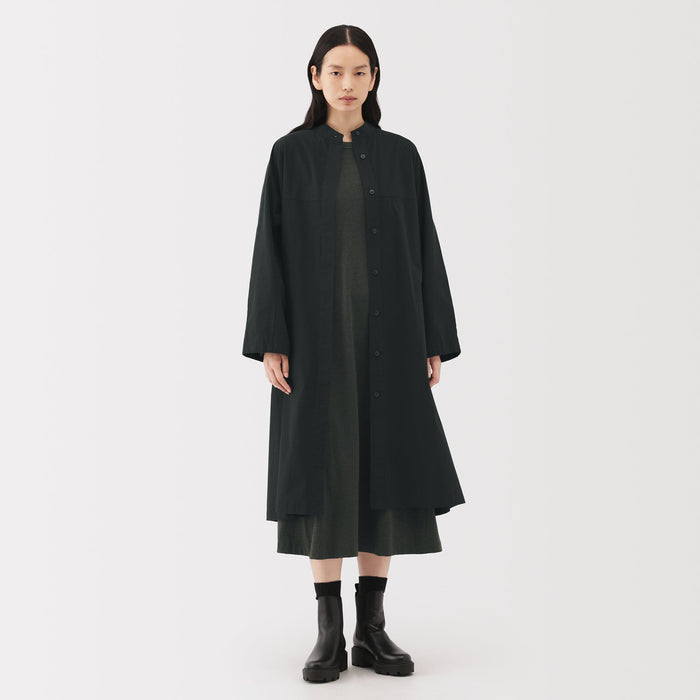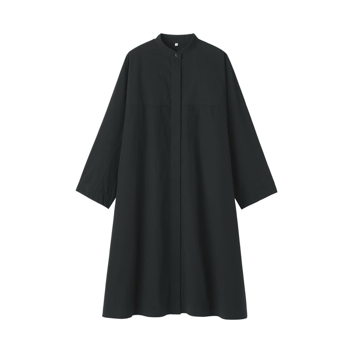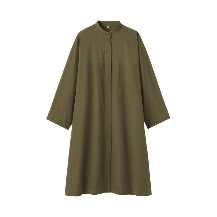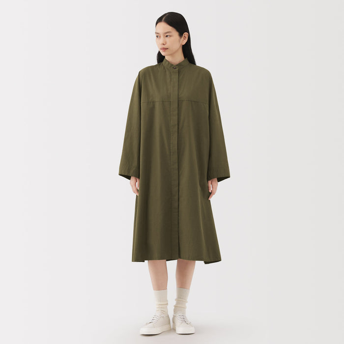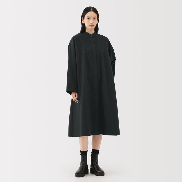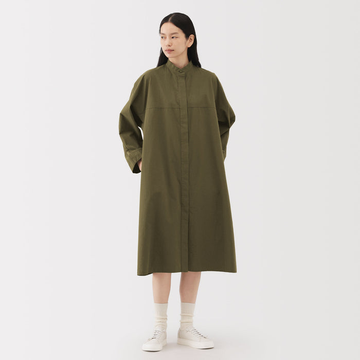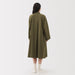 This long sleeve women's shirt dress is made from a high-density organic cotton and wool blend for a luxuriously soft, washed-out texture that is comfortable on the skin. The dress's linear cut and natural drape of the fabric creates a cocoon silhouette, designed to flow away from the body in an elegant way.